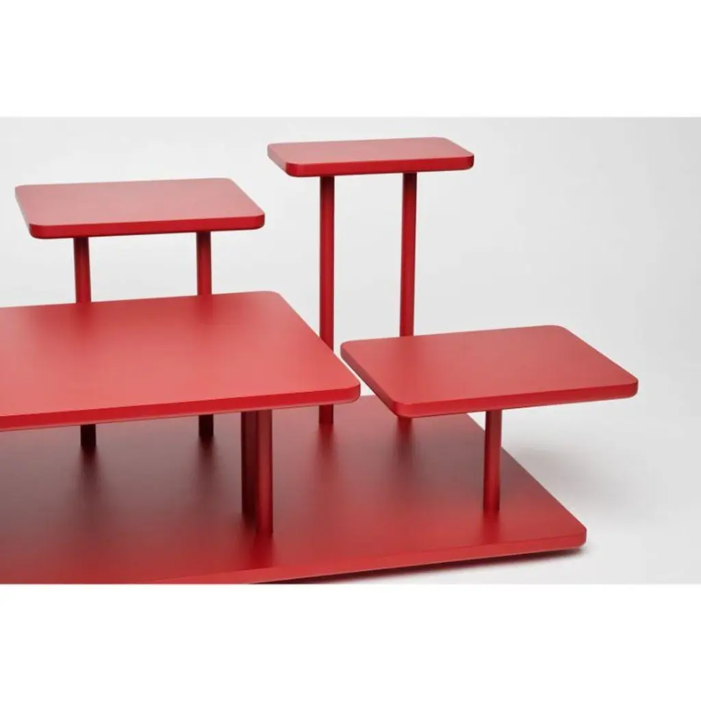 Set of 2, Isole, coffee tables, Ruby Red by Atelier FerraroDimensions: L 101 cm x W 55 cm x H 44,5 cmMaterials: MDF/ Wood“Isole” is an elegant coffee table which challenges conventional shapes and creates a fluid and sculptural collage of whatever objects you decide to display on it. It consists of six separate surfaces of varying sizes, mounted at diverse heights on sleek columns, and a strongly grounded base. The ordinarily flat table top is broken up into a visually appealing combination of surfaces that allow for a uniquely flexible use – a coffee cup on the highest and smallest table top, magazines on the broader one, a plant, a lamp - a customizable landscape of interior design.Atelier Ferraro is a design studio based in Munich focused on creating visually enthralling, intuitive objects of design fitted for the modern user. After studying architecture in Italy and Greece and obtaining a master’s degree, Emanuele Ferraro moved to Germany to work with a series of renowned architecture offices. There he was involved in projects ranging from big-scale commercial and residential buildings to the details of furnishing the interiors of offices and showrooms, offering an opportunity to further develop his passion for furniture and objects of design and hone his skills.