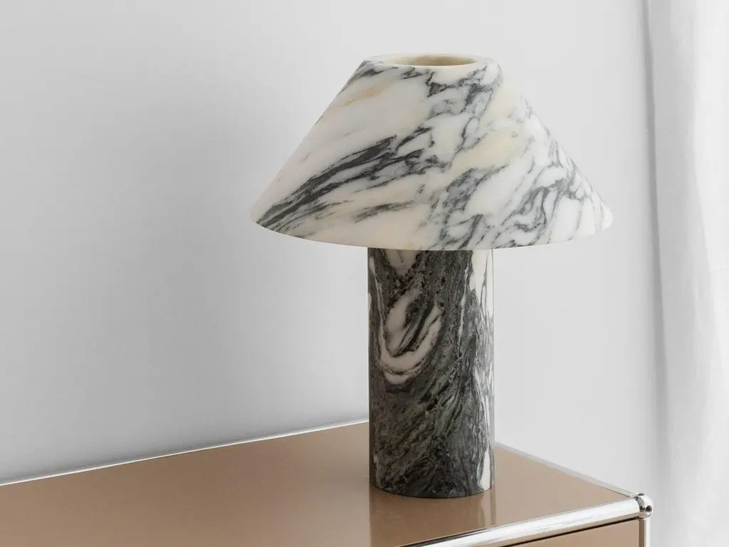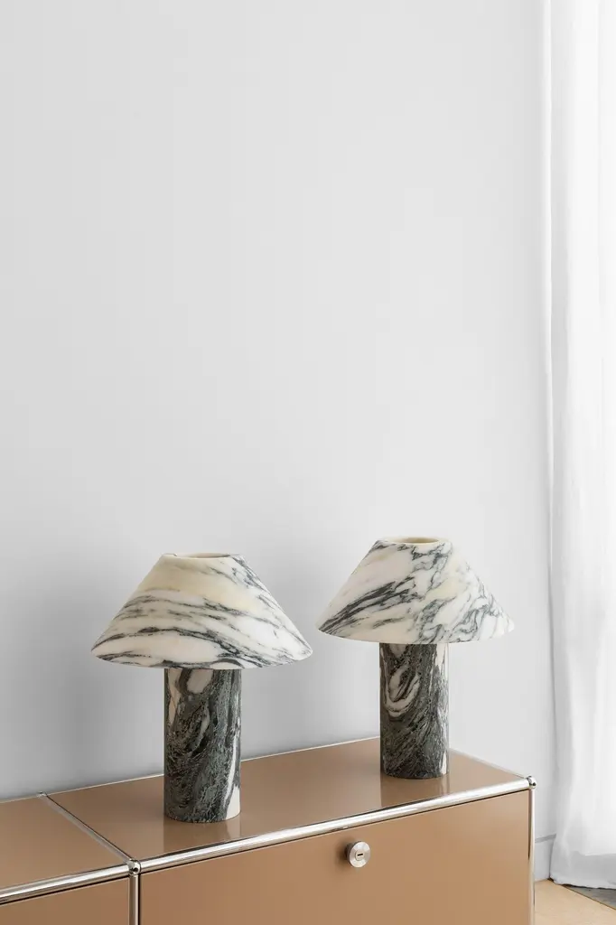 Set of 2 Large Arabescato Pillar Lamps by Henry WilsonDimensions: D 35 x H 40Materials: Arabescato MarblePillar lamp is hewn from two pieces of solid Arabescato marble. It is heavy and will require care in transport and a sturdy surface to display. This piece will be made by special order only.Henry Wilson's work combines a rational, democratic utility with an element of sculptural expression. There is a clear form and function in our products, but it’s important they also have feeling. We are interested in the awkward beauty that comes from something made by hand. We like to explore how imperfection can be introduced into an Industrial process, to make something at scale that retains a sense of individual charm.Permanent collections and exhibitions- Museum of Applied Arts and Sciences, Sydney, Australia- Art Gallery of Western Australia, Perth, Australia- 'Sempering' XXI Triennale, MUDEC, 2016, Milan, Italy.All our lamps can be wired according to each country. If sold to the USA it will be wired for the USA for instance.