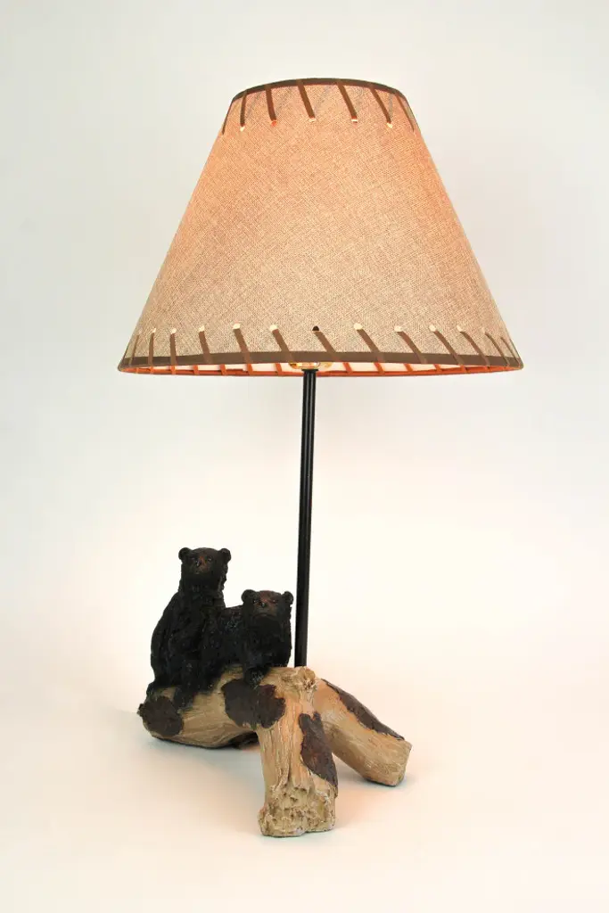 OVERALL SIZE - Each Lamp Measures 23.5 Inches High, with a 14 Inch Diameter ShadeDURABLE MATERIAL - Crafted of High Quality Polyresin, With Metal HardwareUNIQUE FINISH - Hand-Painted To Show Off the DetailUL Rated - Takes Standard E26 Bulbs Up to 40 Watts (Not Included)LODGE DECOR - Perfect for Country Homes and CabinsBrighten up your cabin with this awesome pair of table lamp featuring a black bear couple relaxing on a fallen log. Measuring 23.5 inches tall, each lamp comes with a 14 inch diameter burlap shade with laced accents. These hand painted cast polyresin lamps are a wonderful decorative accent for nature lovers. They use standard E26 base bulbs up to 40 watts (bulbs not included), and have a 59 inch long power cord with an inline rotary switch.