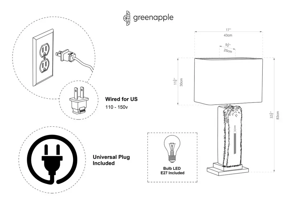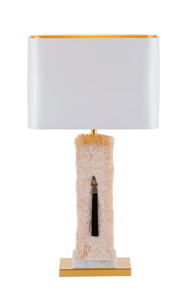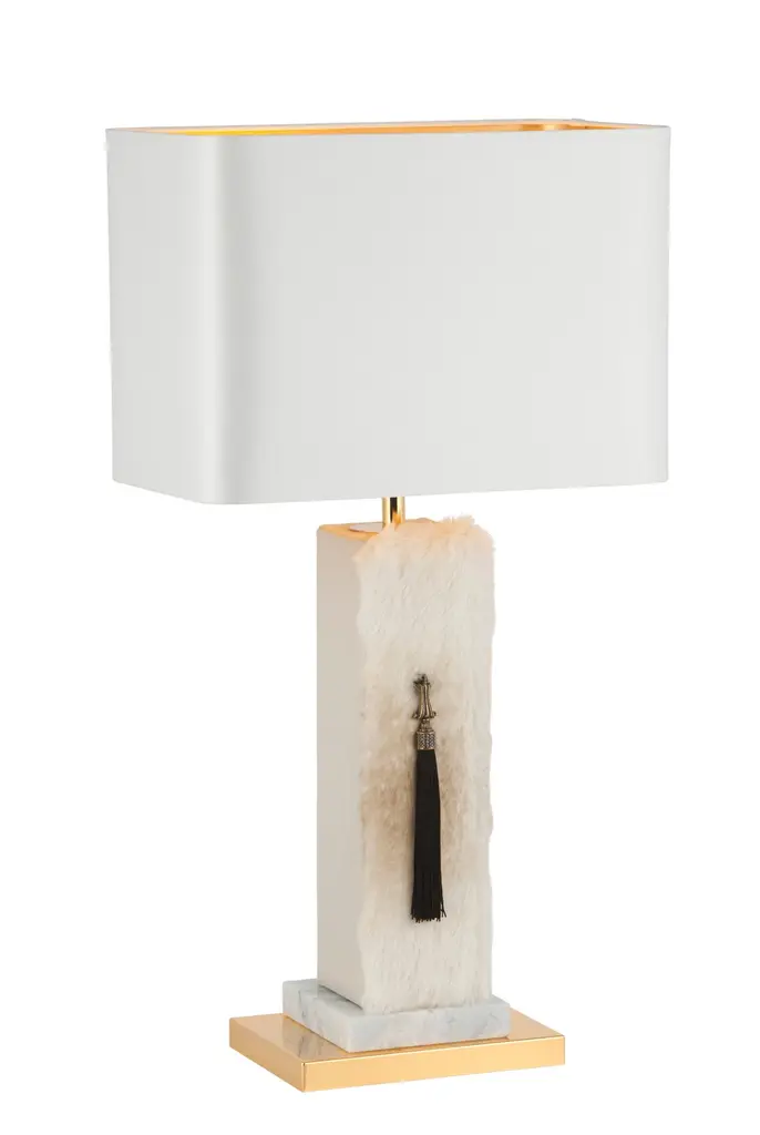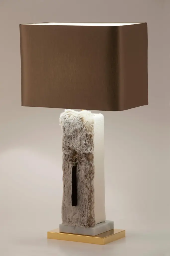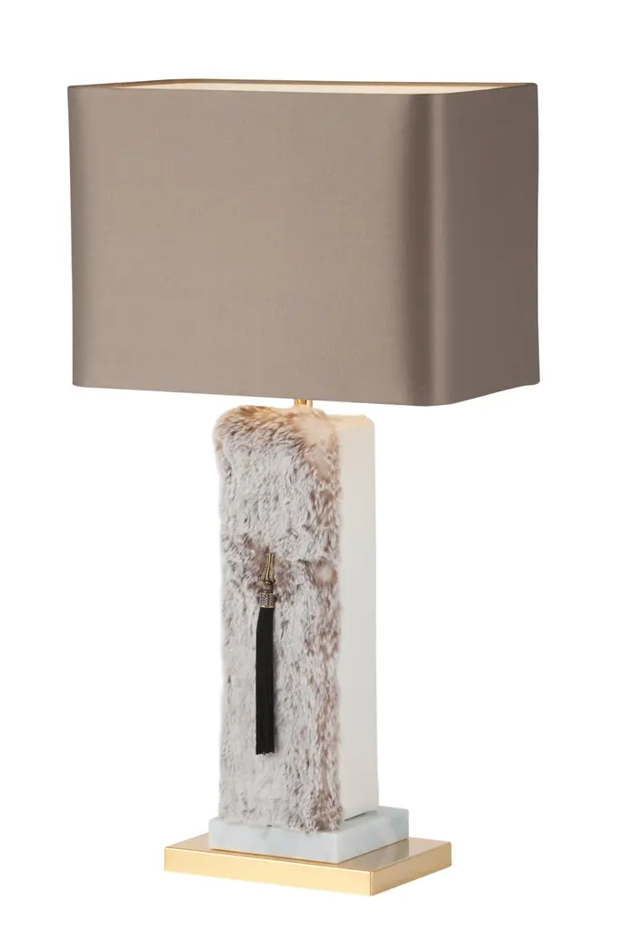 Set of 2 Modern Andrade Table Lamps, Modern Collection, Handcrafted in Portugal - Europe by GF Modern.Andrade is an elegant table lamp and an attractive addition to a modern home. The Blue Crystal marble and brushed brass gracefully combine with the pearl faux fur and brown lampshade. Andrade was designed to warm the cosy spaces.Set of 2 Modern Andrade Table Lamps Material CodesM100023 Pearl faux furM100024 Beige faux leatherST002 Blue Crystal marble; polishedM103853 Brown satin fabricME006 Brushed brass; high-gloss finishEL002 E27 LED lampHandcrafted in Portugal - Europe by GreenappleUnique by design, Crafted by peopleFounded in 2005 by Sérgio Rebola and Rute Martins, Greenapple designs and produces in-house luxury furniture for exclusive customers worldwide.Our own in-house production facility allows us to be obsessed with detail, and gives us the freedom to dedicate ourselves to the most demanding tailor-made and customised work. As Rute designs all the unique pieces, Sérgio assures the high-quality standards through the whole process - from design to production; from production to your home. Fine craftsmanship, whether perfected by experienced hands or state-of-the-art machinery is quintessential in delivering top quality experiences.