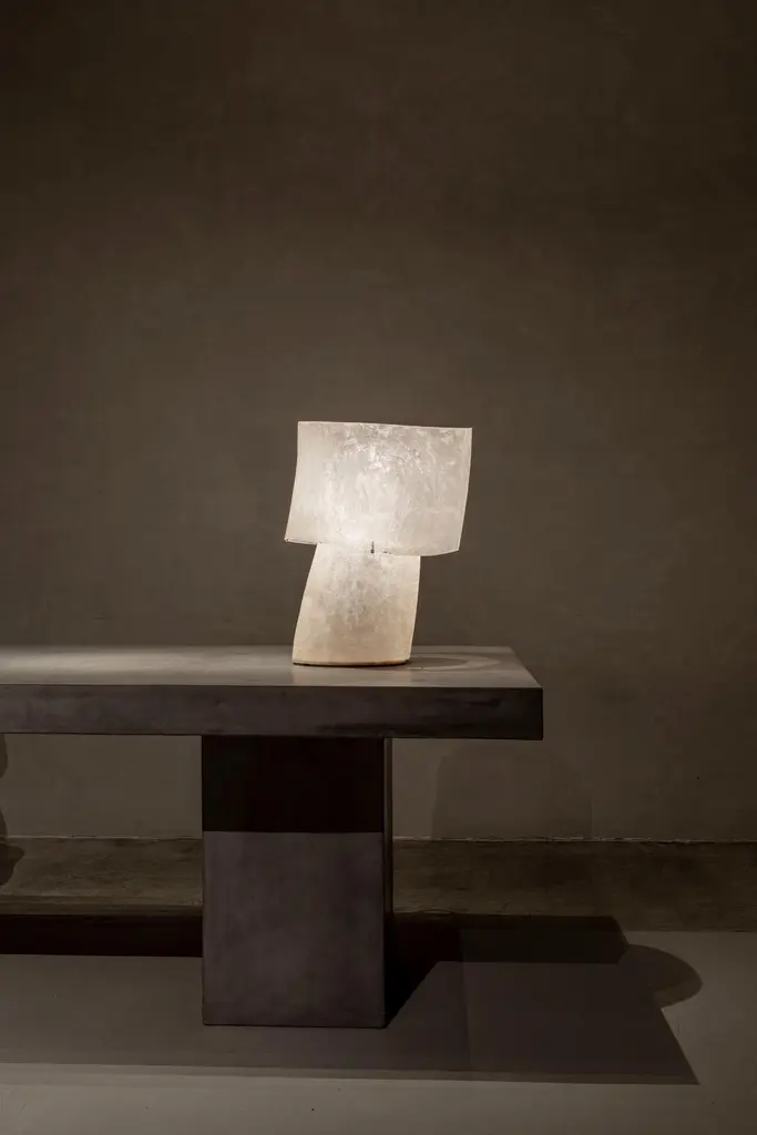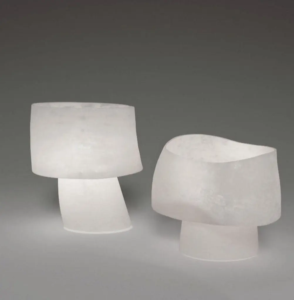 Set of 2 mush lamps by KilziDimensions: tall: Top shade: D 35 x W 29 x H 28 cm, Lower shade: D 29 x W 21 x H 31 cm (total height 55 cm).Chub: Top shade: D 55 x W 26 x H 22 cm, Lower shade: D 23 x W 23 x H 22 cm (total height 40 cm).Materials: fiberglass, stainless steel, organic resin. Weight: 3,5 kg (each).All our lamps can be wired according to each country. If sold to the USA it will be wired for the USA for instance.Jorge Suárez-Kilzi was born in Venezuela to immigrant parents of Spanish andSyrian descent. His collection of works is signed under his mother’s last name, Kilzi, which is also often used to describe a person who works with plaster and chalk-unconsciously leading Jorge down a path he was destined for. The name has a link to a hard childhood in movement, to an immigrant background, to Latin American and its vernacular arts, to a sense of movement and evolution.As a grown man, the sensibilities of his childhood took him all the way to Japan, where worked as an architect in the offices of Sejima+Nishizawa Associated Architects/ SANAA and Junya Ishigami. Swiss architecture, which seemed in contrast, firm and steady, called upon him on a different basis, a return to order but also a reconnection to nature. A recent trip to Mexico and the mesoamericas, felt to Jorge as forgiveness to his early history and aesthetics. Driven by years of immersion in exotic culture and architectural experience, in 2018, he made the decision to become a freelance architect and artist, going from fields of architectural visualisations to ceramics and furniture, giving special attention to drawings and decorative motives. Every piece is expressed in simple forms and delicate emotions, where fluid silhouettes accompany each other like a soul in companionship. Jorge’s recent creation is titled “Mush” Lamps, comprised of two mushroom-shaped lamps made entirely of fibreglass and organic resins. This opaque Material allows light to spread outwards, imbuing a warm glow and ambiance into any interior - existing as both a practical light source and ornamental piece. Jorge shares that his project began with no particular form in mind but later found a resemblance to mushrooms when complete-which he also shares a fascination for the fungi kingdom.“.