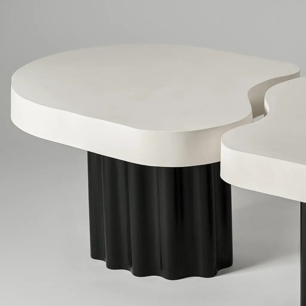 Set of 2 Organic Edge No. 2 Coffee Tables by PerlerDimensions: One table: D 56 x W 65 x H 40 cm.Both tables: D 58 x W 120 x H 40 cm.Materials: Jesmonite.Weight of a single table: 15-20 kg.The height of these tables is customizable. Please contact us.The ORGANIC EDGE coffee tables from the "Waves" series are designed to form an oval shape when placed together. Each module, with its flowing wavy edges, is fully stable and can stand alone as a side table or a smaller coffee table. Handcrafted entirely from jesmonite, a blend of acrylic resin and plaster, these tables are noted for their hardness and durability. A unique feature of this material is its ability to display patterns and tonal transitions between off-white and beige, ensuring each set is truly one-of-a-kind.When the wavy tables are combined, they measure approximately 120 cm in length and 56 cm in width, standing at 40 cm tall. Individually, the tabletops are 56 cm wide and extend to 65 cm at the farthest wave point. The undulating leg boasts an elongated oval design, offering varying visual experiences from different viewing angles.This space was created for individuals who, like me, appreciate originality, artistic objects, art, and design. Here, you’ll find more than just inspiration and advice – it’s a destination for applied art, featuring original designer furniture and artist-signed collections. You can find limited collections of tables, lamps, vases, and bas-reliefs, created exclusively for the Perler Design brand, in the design shop section (soon).I established this space immediately following my initial visit to the Milan Interior Fair. Although my love for design began much earlier, this event served as the catalyst for my action. In 2016, I launched my interior design blog where I continue to share monochrome spaces, interior design tips, and reports from industry events.A few years into blogging, my greatest dream was realized – the website expanded to include an online store featuring my unique furniture designs such as coffee tables, side tables, and table sets.Today, our offerings also encompass applied art objects crafted by artists. Sculptors, ceramists, graphic artists, and individuals engaged in artistic glass production design and create limited collections dedicated to the Perler Design brand. These include reliefs, glass and ceramic vases, and table lamps.These designs will beautifully complement various interior styles, including Parisian, Scandinavian, vintage, eclectic, and New York.