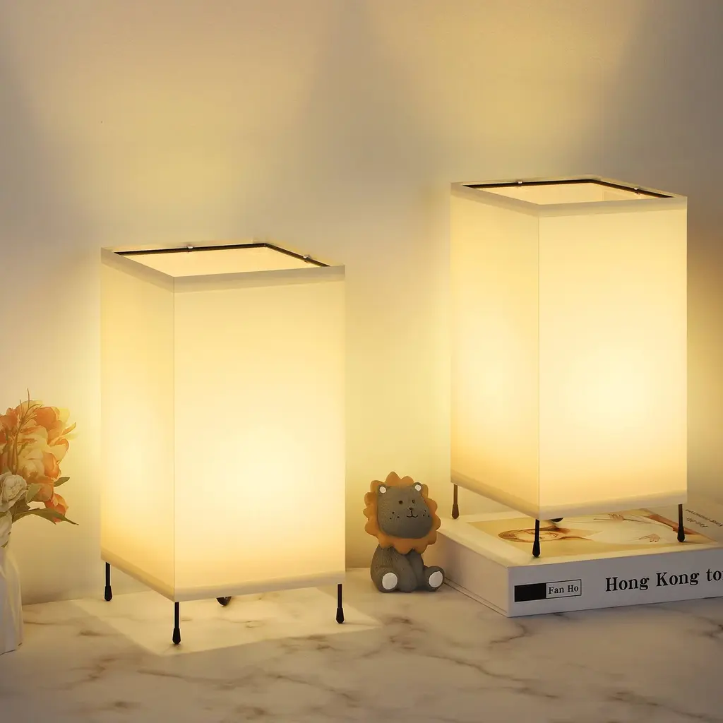 Set Of 2 Small Bedside Table Lamps With Simple Metal Base - Rectangle - White