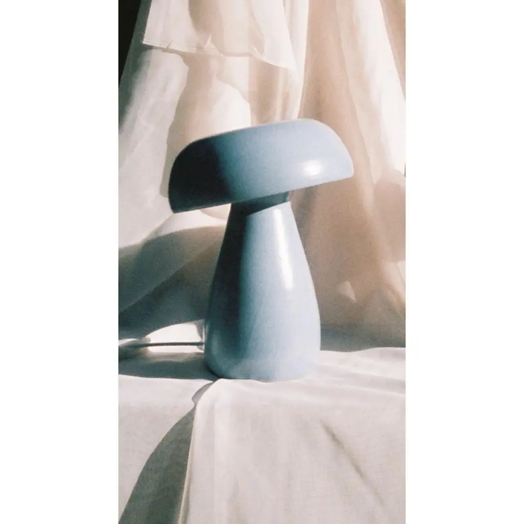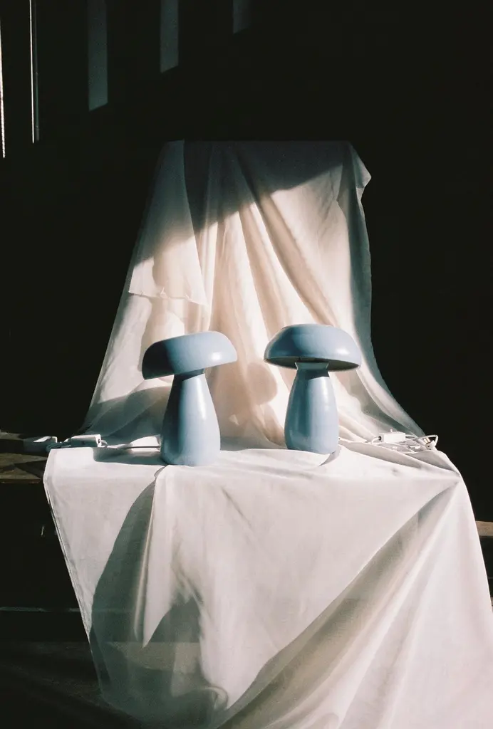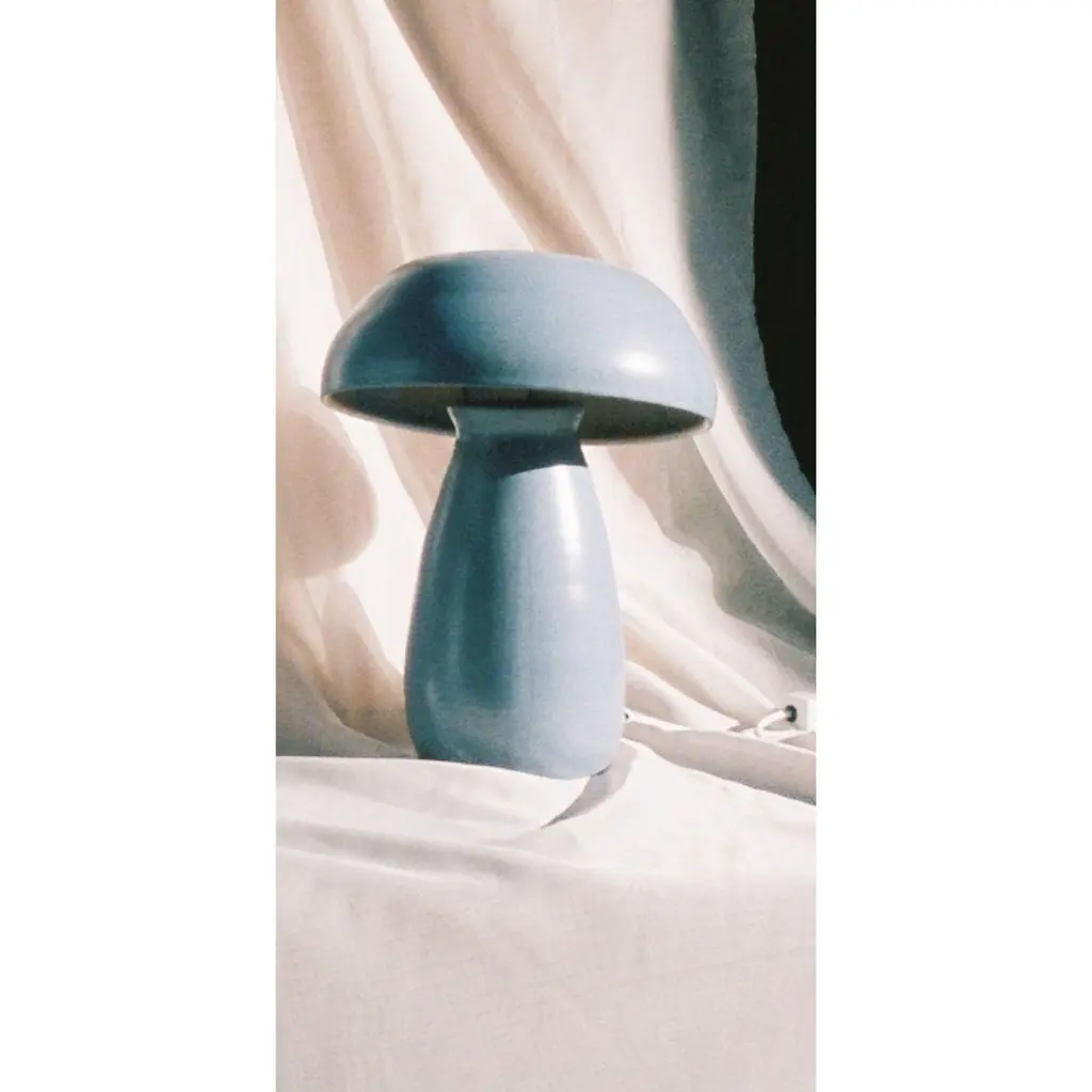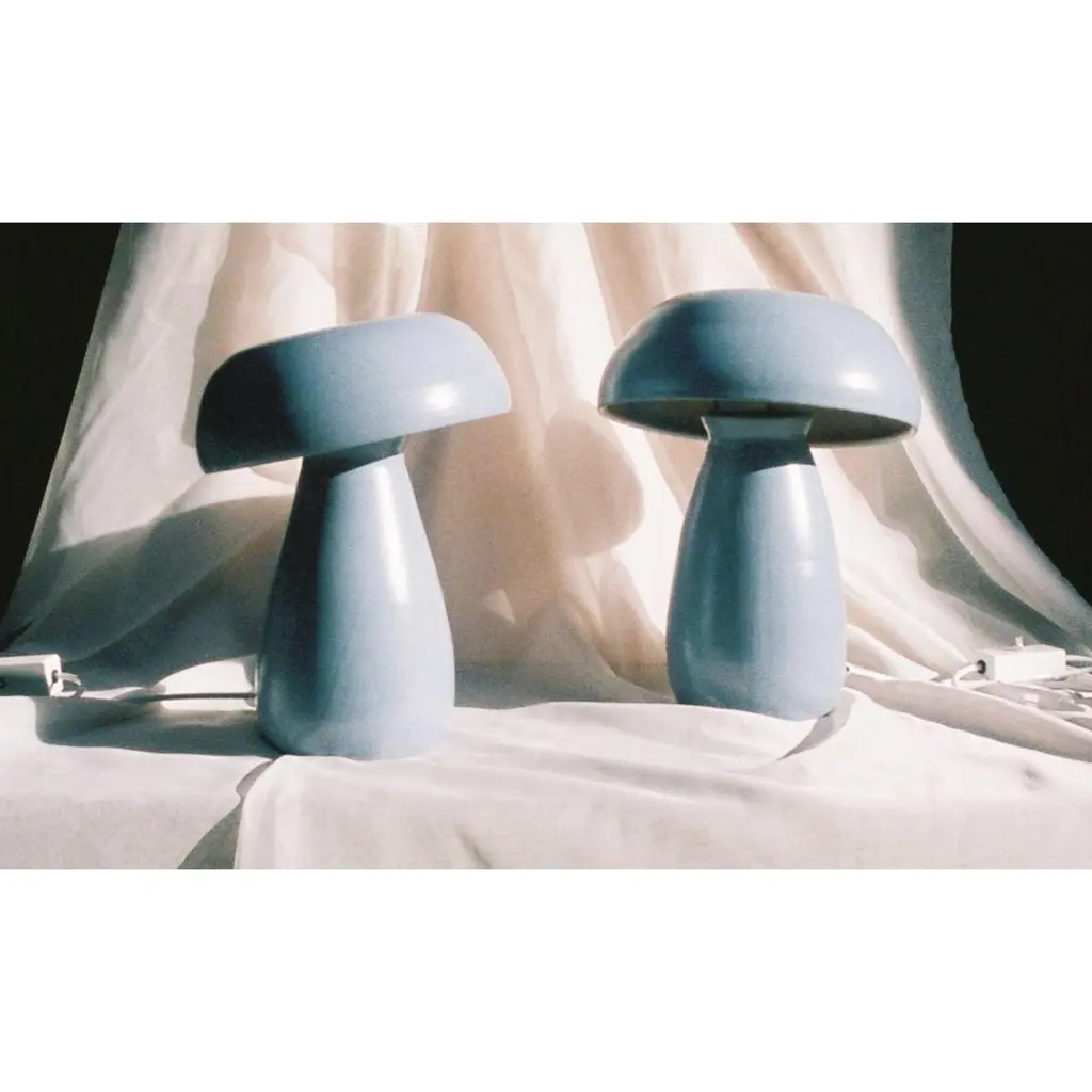 Set of 2 Stone Blue Glaze Satin Small Mushroom Lamps by Nick PourfardDimensions: Ø 33 x H 38 cm each.Materials: ceramic.Different finishes available. Please contact us.All our lamps can be wired according to each country. If sold to the USA it will be wired for the USA for instance.Designed with the intention of creating a light that is multi-directional within it’s own form and functions without additional hardware.A hand-thrown ceramic lamp that is comprised of two pieces. Using a ball joint design, the upper rests on the base allowing for movement of the light in any direction. This helps the user shift the shade as needed, creating an experience that is both functional and intimate.Like all handmade pieces there is natural variation in the clay, firing, and shape. No two items are exact matches, please consider this when ordering.Nicholas Bijan Pourfard is a furniture and lighting designer based in Southern California. Pourfard is completely self-taught in woodworking and machining, though he double-majored in industrial design and business marketing at San Francisco State University. He’s been building furniture and lighting for himself but only started promoting it this past year. Furniture design has its parameters, of course, but it’s allowed Pourfard to contrast the precision of measurement and the patterns of math with something more loose — organic shapes offset by angularity, like his Bloop lighting, where plump handblown glass blobs glow and rest on a base of geometric steel. There’s something companionable, a kind of friendly quality, to his pieces, whether it’s the warmth of his ceramic Mushroom lamps or his Box chairs, which despite the rigor of their form, still invite you to sit.