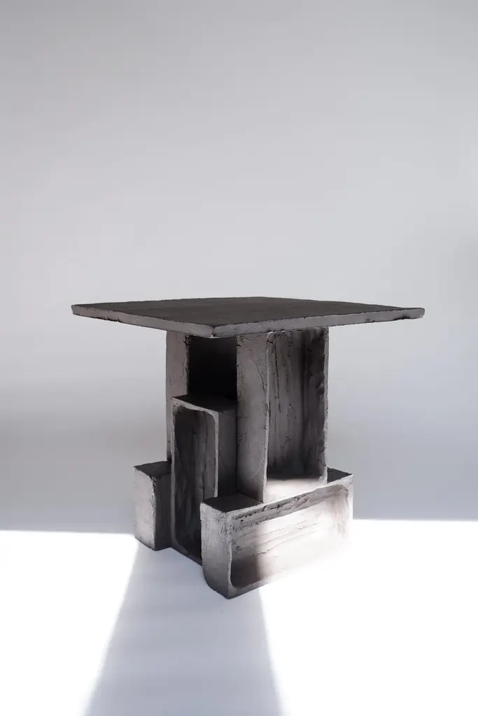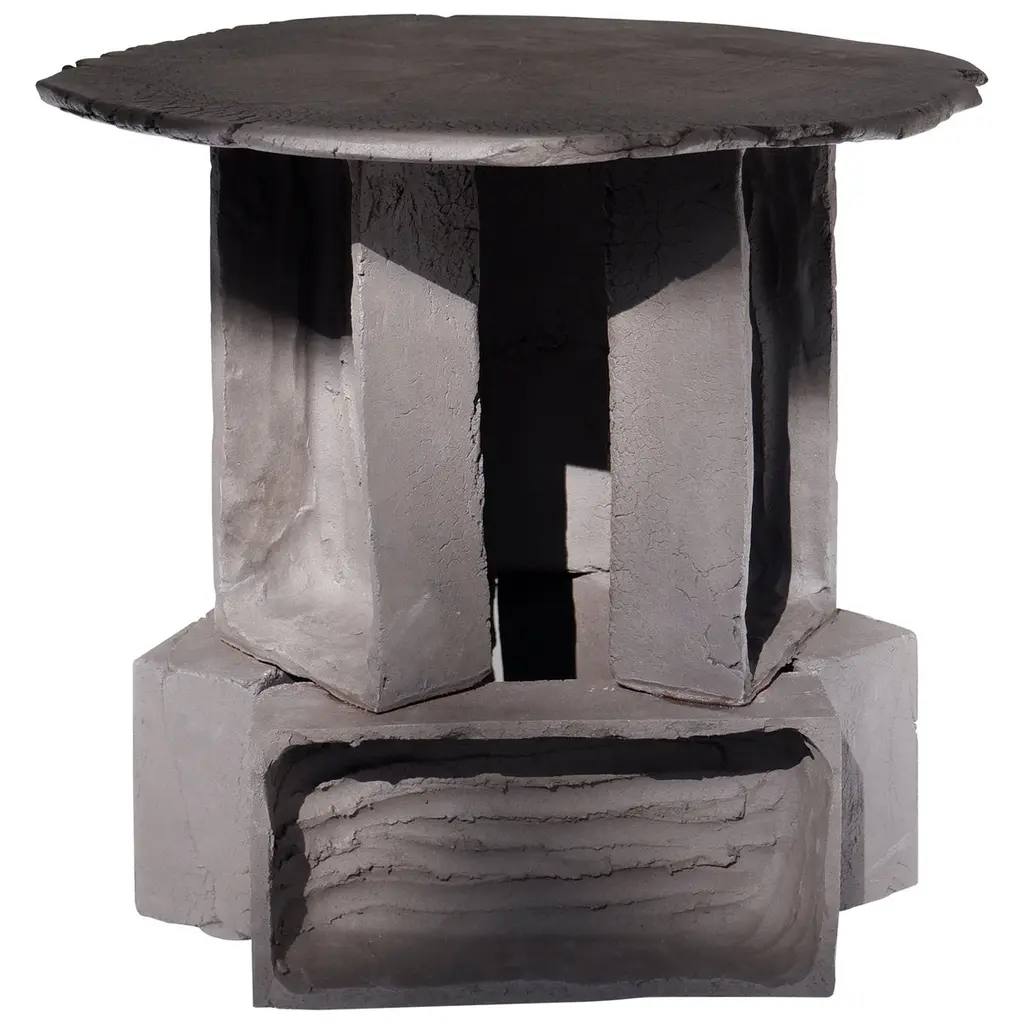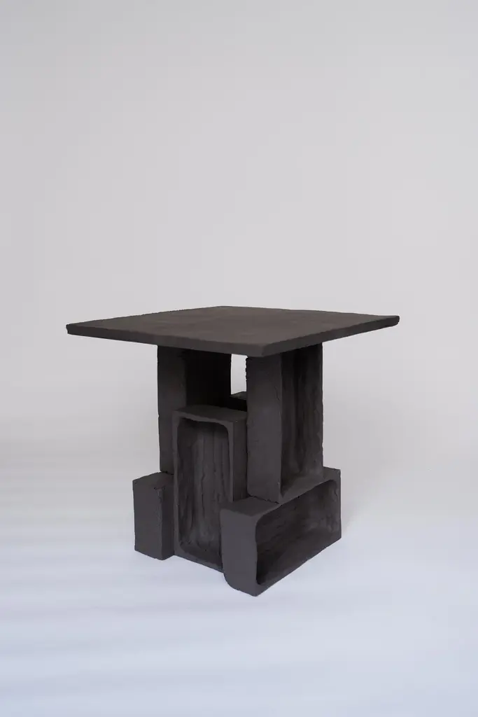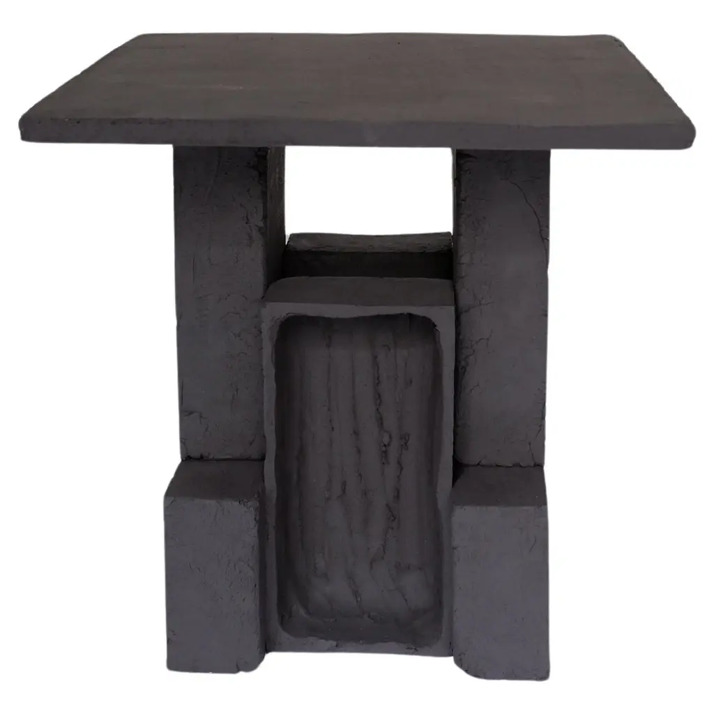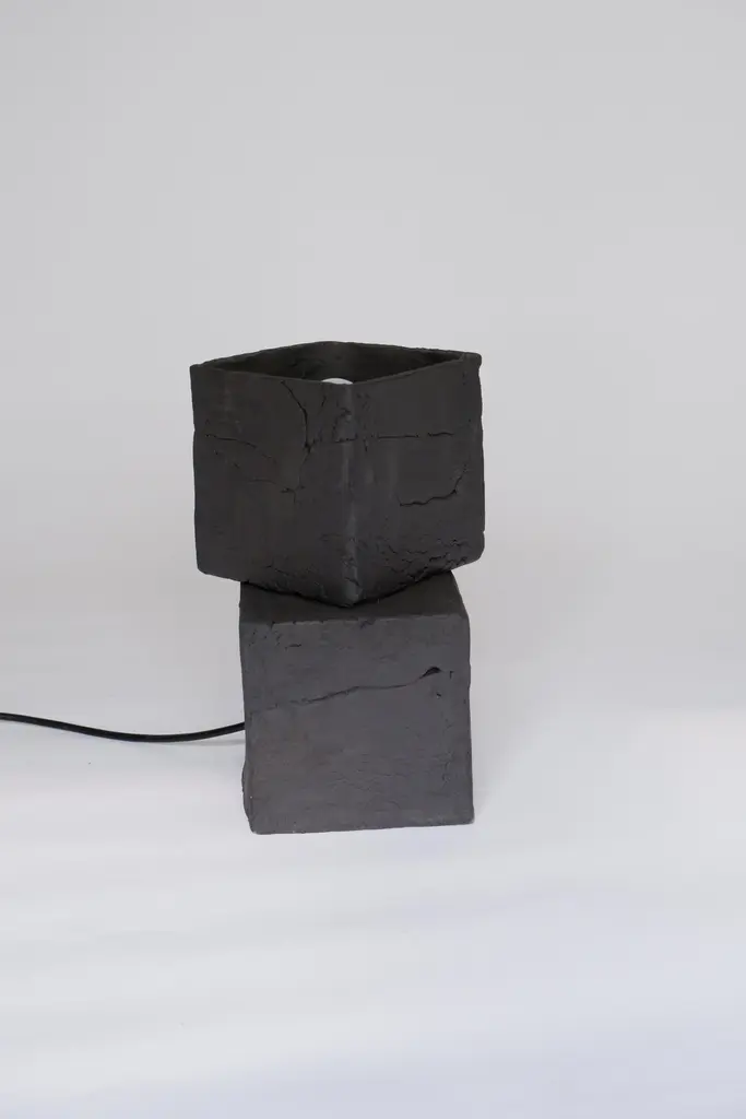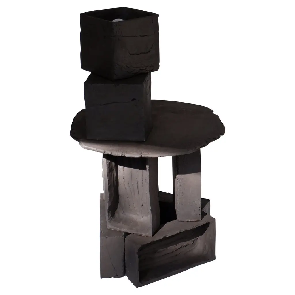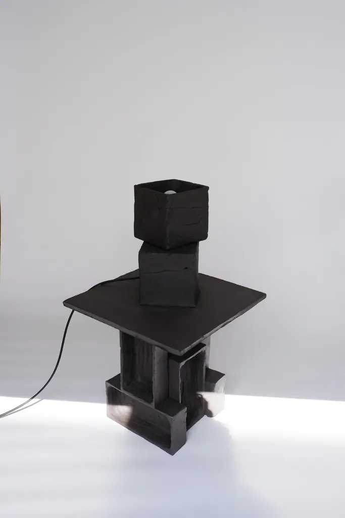 Set Of 2 T03 Coffee Table And Twist Lamp by Ia KutateladzeOne Of A Kind.Dimensions: Coffee Table: D 38 x H 37 cm.Twist Lamp: D 20 x W 18 x H 26 cm.Materials: Black clay.Each piece is one of a kind, due to its free hand-building process. The top is always irregular and one of a kind. Possible material variations: raw black, red or white clay. Dimensions may vary. Sculptural, bold but at the same time minimalist, elegantly simple, hand-built table lamp. With two different textured surfaces. Please contact us. All our lamps can be wired according to each country. If sold to the USA it will be wired for the USA for instance.IAAI / Ia Kutateladze is a Georgian multidisciplinary designer based in Berlin. The production is done by her in the studio, where differentmediums of design and craft are merged together with experimentation, playfulness and fascination for diverse materials.“To me, design is a palette of boundless imagination, intuitive approach, aesthetic sense and adventurousness expressed through forms. Design excellently transforms everyday life into joyful process of invention. My designs are playful objects of affection, which are results of slight and uncomplicated impressions, observations or interpretations. Sheer simplicity and attention to details, integrated with profound understanding of the surroundings, the past and the future, are at the core of my designs. I would like my designs to be more than functional objects, to have the power to magically interact with people."