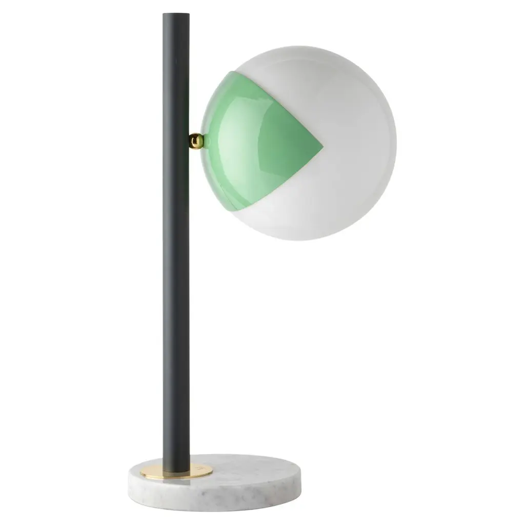 Yellow dimmable table lamp pop-up black by Magic Circus EditionsDimensions: Ø 22 x 30 x 53 cm Materials: carrara marble base, smooth brass tube, glossy mouth blown glassAll our lamps can be wired according to each country. If sold to the USA it will be wired for the USA for instance.Rethinking, reimagining, redesigning familiar objects that we look at every day without ever really seeing them and using light to tell stories, this how Marie-Lise Féry sees her work. Offering a new take on our urban heritage, changing our perspective through her work on scale and usage. Since 2015, Magic Circus Éditions has been setting the world of lighting ablaze, creating airy, playful and magical designs that merge retro with sleek and contemporary. A free-spirited antiquarian, founder Marie-Lise Féry draws inspiration from the world of cabarets and the magic of the circus to give shape to imaginative, fun and playful collections. The air of magic she breathes into her work reveals a wealth of interpretations and widens possibilities for creative interiors. The combination of traditional know-how — outstanding craftsmanship — and her imaginative take on historical, everyday objects lends an unexpected and charming quality to her creations.Féry’s lights are designed just like magic lanterns — precursor to modern-day cinema —, inspiring wonder through oversized, seemingly weightless compositions and understated references. Each collection has its own inspiration: the first models of street lighting for Collection 01; the happy memories of funfairs, sweets and balloons for her latest collection Balloon; the Far East for Collection 02; and the colourful, carefree spirit of the 1970s for Pop-Up, released in 2019. Magic Circus Éditions draws on airy designs, dream-like inspirations, colours and fun to create a sense of enchantment.Magic Circus Éditions founder Marie-Lise Féry was born in Paris. After studyingart business, she moved to New York to start her career. Fascinated by the city’s architecture, she found an endless source of inspiration in the Big Apple’s monumental decors. Returning to France to settle down in Lyon, she opened an antiques gallery named Un Château en Espagne, and started telling her own stories through objects she gleaned on markets all around the country. A way for her to perpetuate her mother’s motto: “Objects with a soul will always belong”. Since 2015, the year she established Magic Circus Éditions, she has moved on to lighting as a new medium for telling her stories, bringing the magic of the show into home interiors. With her love for the circus, turn-of-the-century cabarets and music halls, Marie-Lise Féry’s love of unusual objects has remained strong, but now prefers to focus her attention on pieces she has imagined herself. With a fun and light-spirited approach, she creates a bold visual effect that elicits instant attraction. She collaborates with some of Europe’s greatest artisans, from Prague and Murano to Clermont-Ferrand, working for instance with a Czech company specialising in sculpting glass using a diamond-blade saw, or an auto body shop renowned for their work with lacquers. The refinement of shapes and finishes, bespoke designs and technical excellence all contribute to creating pieces that inspire surprise and wonderment. In the manner of Wes Anderson in Grand Budapest Hotel, blending together elegance, humour and unexpected details, her designs never fail to surprise. Attentive to the effect of her designs both in daylight and at night, Marie-Lise Féry takes us on a journey through space (from outside to inside) and time (from yesterday to today).