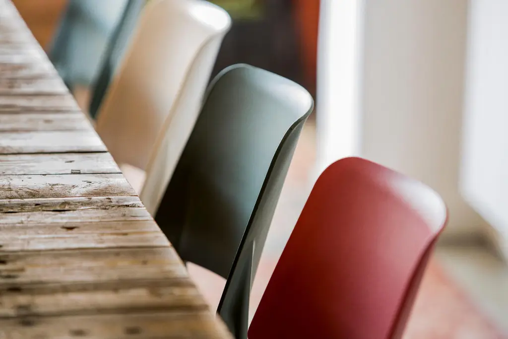 Set of 4 Belloch dining chair by Lagranja DesignDimensions: D 50 x W 54 x H 79 cmMaterials: beech wood, polypropylene, fiberglass.Available in other colors.The Belloch chair is the result of commissioning a lightweight and stackable design. Combining various materials, including aluminium and wood for the legs, and a range of colours for the seat, this chair is suitable for both indoor and outdoor use. Comfortable and pleasing, it is simplicity itself.Santa & Cole is a small, independent and global editor of design products, with its roots in Belloch (Barcelona, Spain). We have been editing since 1985, when the company was first founded. By editing we mean preparing a work for the public domain, we mean adapting an item for everyone’s use. What a book editor does with stories, we do with objects.More than eighty creators have contributed to a rich catalogue of furniture and lighting products originating in very different contexts, by renowned designers such as Antoni Arola, Miguel Milá, André Ricard and llmari Tapiovaara.Acute and attentive to quality and detail, Santa & Cole outsources all of its industrial production to an extensive network of suppliers, mainly in Spain, but also in other countries such as Japan, where the washi paper for our Tekiò lamp is made.Our mission is to build, safeguard and disseminate knowledge through design objects. Objects whose quality is recognisable at the touch of a hand, and that enrich people’s lives, whether at home or in shared environments. Our philosophy is more modern than futurist and we are more intrigued by silence than by stridency.Our focus is not the present market, but the future one; not Barcelona, but the world; not fashion, but history.All our lamps can be wired according to each country. If sold to the USA it will be wired for the USA for instance.