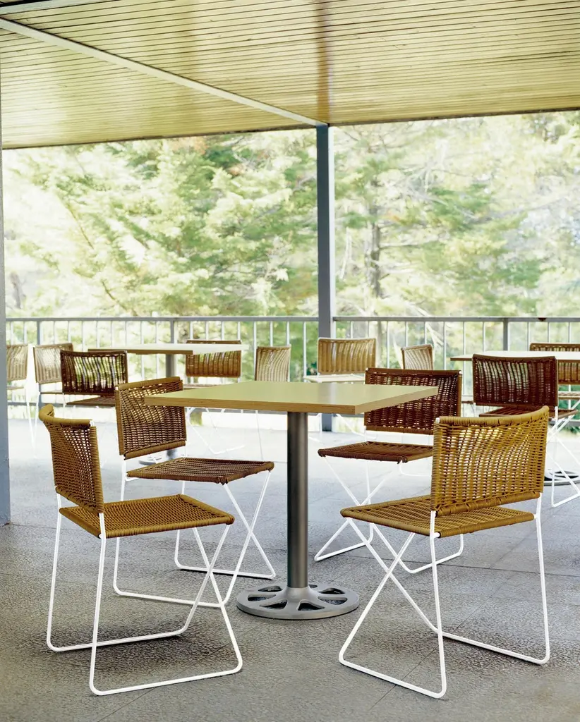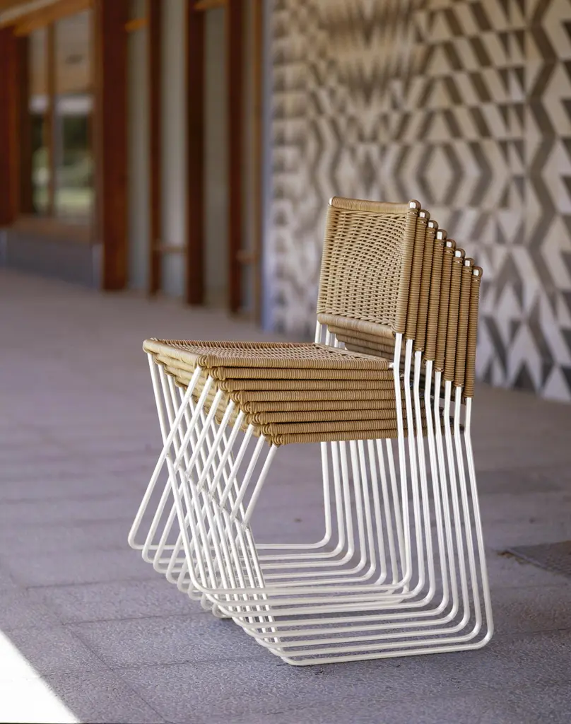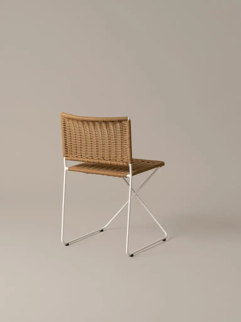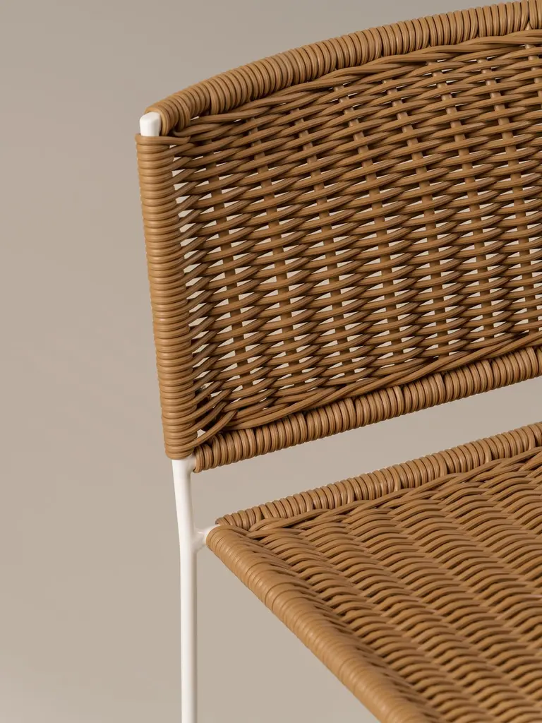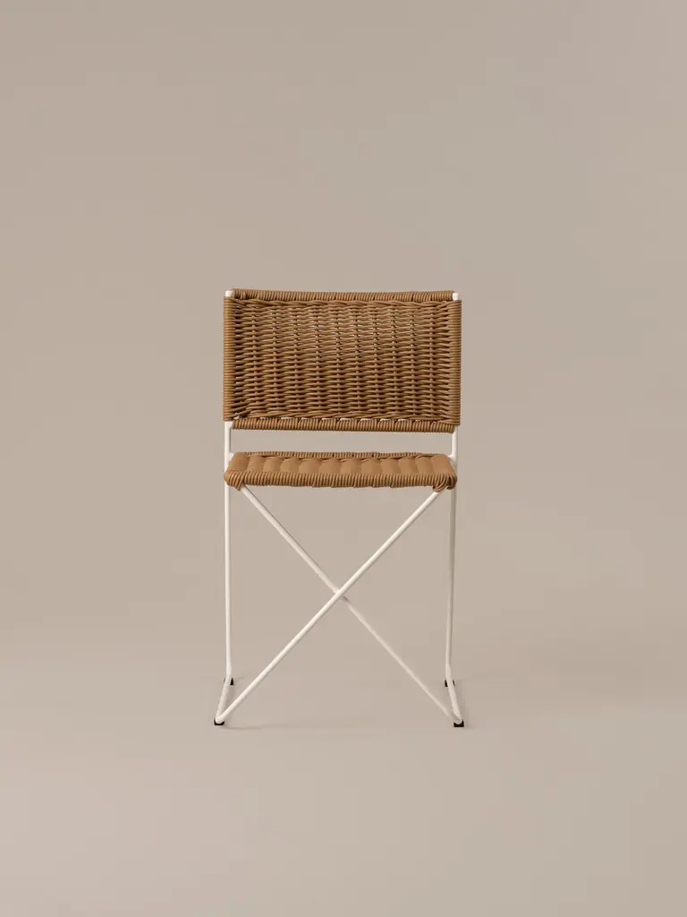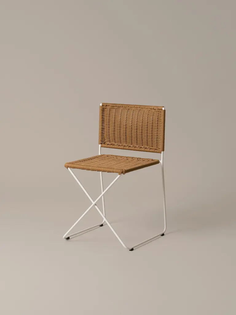 Set of 4 natural Ramón chair by Ramón BigasDimensions: D 45 x W 46 x H 75 cmMaterials: metal, rattan.Available in white or natural rattan.The Ramón chair is a carefree yet serious design suitable for both indoor and outdoor use. The white metal frame and elegant X-shaped legs are finished by a white or natural wicker seat and backrest. The geometry of this chair makes it easy to stack and move.Santa & Cole is a small, independent and global editor of design products, with its roots in Belloch (Barcelona, Spain). We have been editing since 1985, when the company was first founded. By editing we mean preparing a work for the public domain, we mean adapting an item for everyone’s use. What a book editor does with stories, we do with objects.More than eighty creators have contributed to a rich catalogue of furniture and lighting products originating in very different contexts, by renowned designers such as Antoni Arola, Miguel Milá, André Ricard and llmari Tapiovaara.Acute and attentive to quality and detail, Santa & Cole outsources all of its industrial production to an extensive network of suppliers, mainly in Spain, but also in other countries such as Japan, where the washi paper for our Tekiò lamp is made.Our mission is to build, safeguard and disseminate knowledge through design objects. Objects whose quality is recognisable at the touch of a hand, and that enrich people’s lives, whether at home or in shared environments. Our philosophy is more modern than futurist and we are more intrigued by silence than by stridency.Our focus is not the present market, but the future one; not Barcelona, but the world; not fashion, but history.All our lamps can be wired according to each country. If sold to the USA it will be wired for the USA for instance.