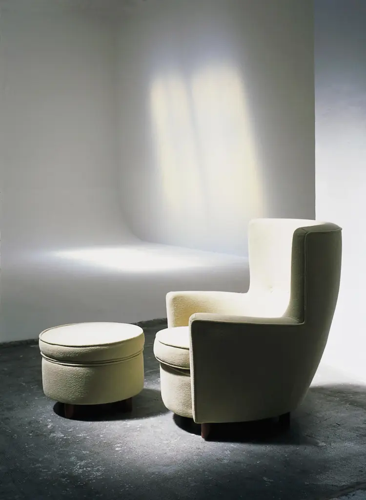 Set of 2 moragas armchair and ottoman by antoni de moragas gallissà dimensions: d 84 x w 79 x h 92 cm / d50 x 42 cm. Materials: beech, fabric. Available in other fabrics. Moragas is an intimate armchair in curved shapes with low armrests and an enveloping backrest. Inspired by the shapes of ancient roman baths, it is ideal for a long read. Its matching footrest can be upholstered in the customer’s chosen fabric or gabriel fabrics. Santa & cole is a small, independent and global editor of design products, with its roots in belloch (barcelona, spain). We have been editing since 1985, when the company was first founded. By editing we mean preparing a work for the public domain, we mean adapting an item for everyone’s use. What a book editor does with stories, we do with objects. More than eighty creators have contributed to a rich catalogue of furniture and lighting products originating in very different contexts, by renowned designers such as antoni arola, miguel milá, andré ricard and llmari tapiovaara. Acute and attentive to quality and detail, santa & cole outsources all of its industrial production to an extensive network of suppliers, mainly in spain, but also in other countries such as japan, where the washi paper for our tekiò lamp is made. Our mission is to build, safeguard and disseminate knowledge through design objects. Objects whose quality is recognisable at the touch of a hand, and that enrich people’s lives, whether at home or in shared environments. Our philosophy is more modern than futurist and we are more intrigued by silence than by stridency. Our focus is not the present market, but the future one; not barcelona, but the world; not fashion, but history. All our lamps can be wired according to each country. If sold to the usa it will be wired for the usa for instance. This piece is attributed to the mentioned designer/maker. It has no attribution mark and no official proof of authenticity, however it is well documented in design history. I take full responsibility for any authenticity issues arising from misattribution