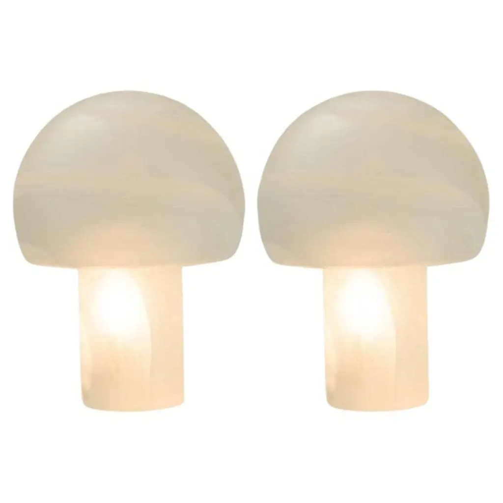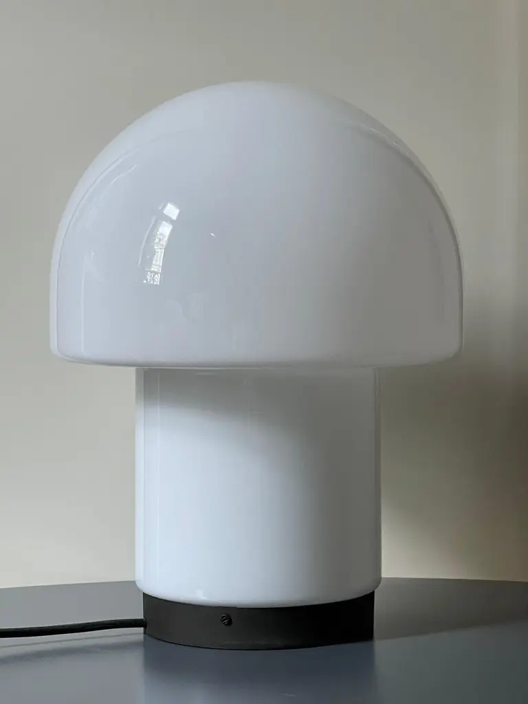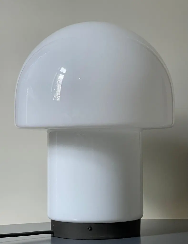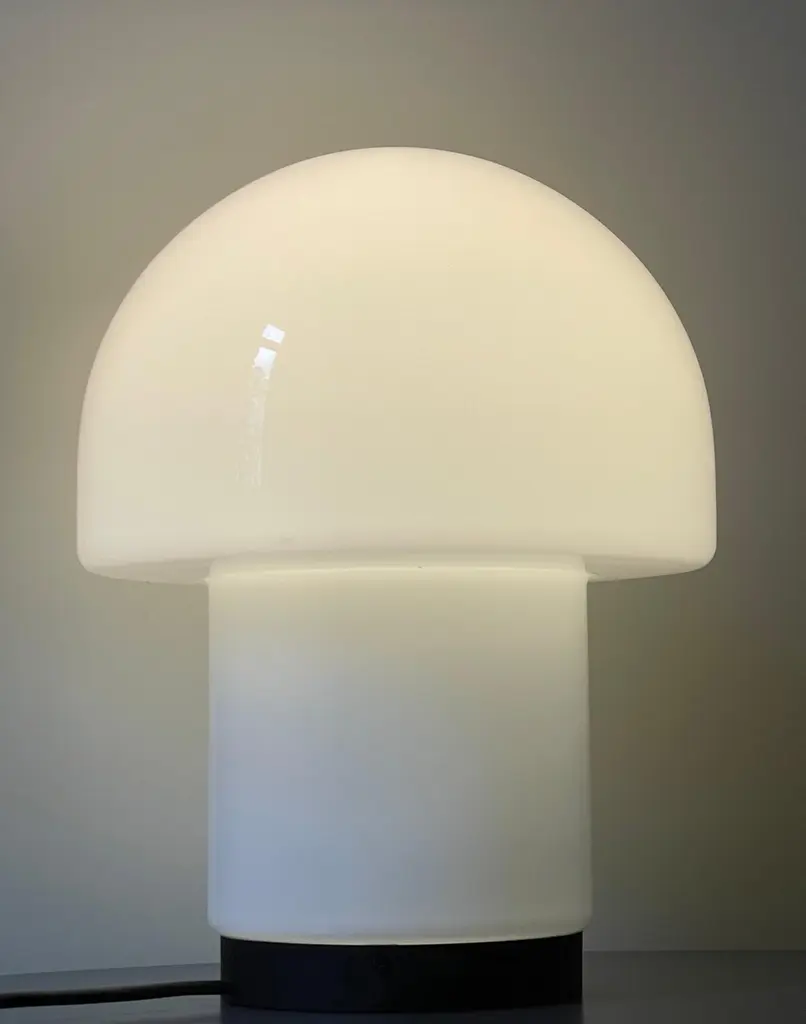 Set Of Seven Milk Glass Mushroom Table Lamps By Glashütte Limburg, Circa 1970s
