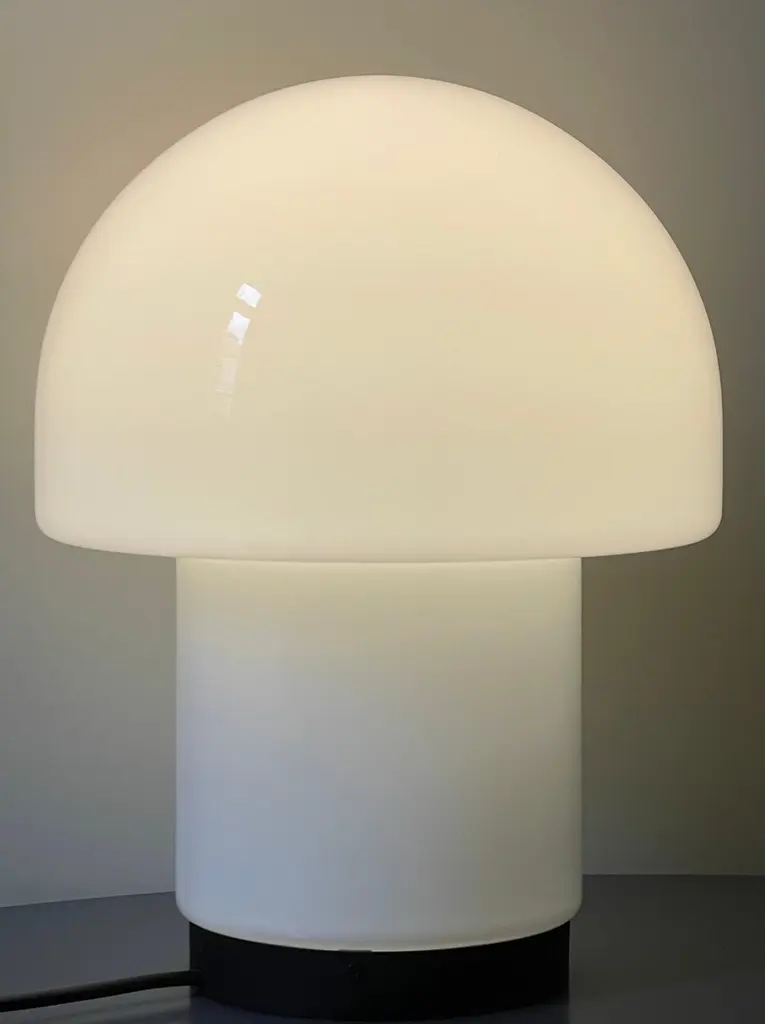 A big set of eight mid - century milk glass "mushroom" table lamps by Glashütte Limburg, Germany, circa 1970s.Socket: each 1 x e27 for standard screw bulbs.