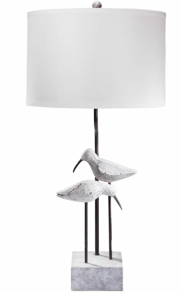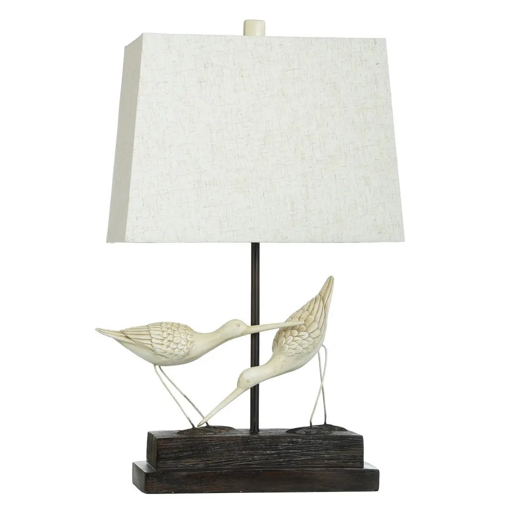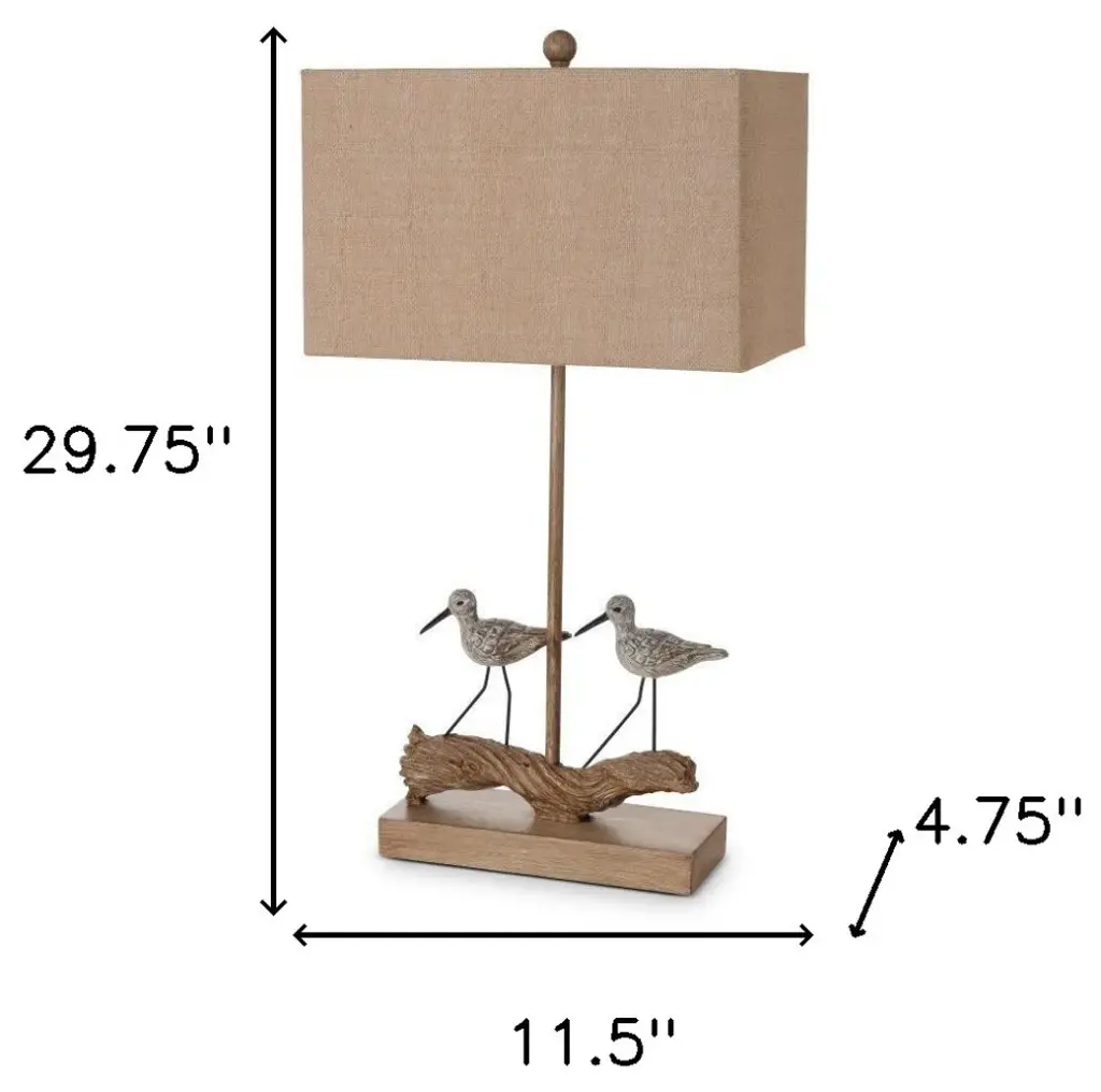 This set of two 30-inch brown bird table lamps with brown shade is a great way to add some brightness to any corner of your home. The base of this lamp is made of polyresin and features a pair of Sand Piper birdies on a piece of driftwood. The brown shade has a rectangular shape and is made from fabric. This standard table lamp is designed to provide general lighting to the area. Bring some lite and good vibes into your space with this updated and stylishly designed lamp. 29.75-inch H x 11.5-inch W x 4.75-inch D