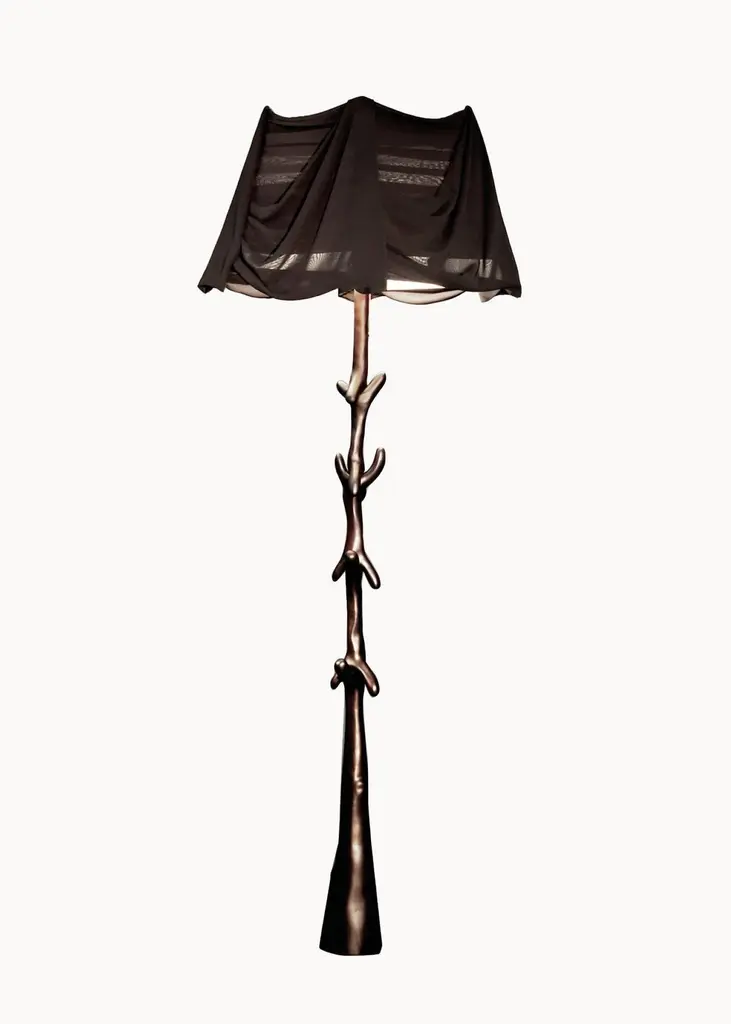 Set of Two Salvador Dali Limited Edition Sculpture Lamp Drawers and Muletas Muletas and Drawers Lamp.Carved structure in black varnished limewood.Lampshade in black linen.The black label collection came to market in a limited edition of 105 pieces (the age of Dali in 2009).Measures: 30 x 30 x 87 H cm45 x 45 x 187 H cmA standing lamp taken from Dalí’s drawings for Jean Michel Frank. With this, Dalí introduced the little drawers at the base of the lamp, an idea he already used on other occasions for example, “Venus de Milo aux tiroirs” (Venus of Milo with drawers). The IDEA of connecting the electronic cord through one of the drawers is a contribution made by Architect Oscar Tusquets Blanca.