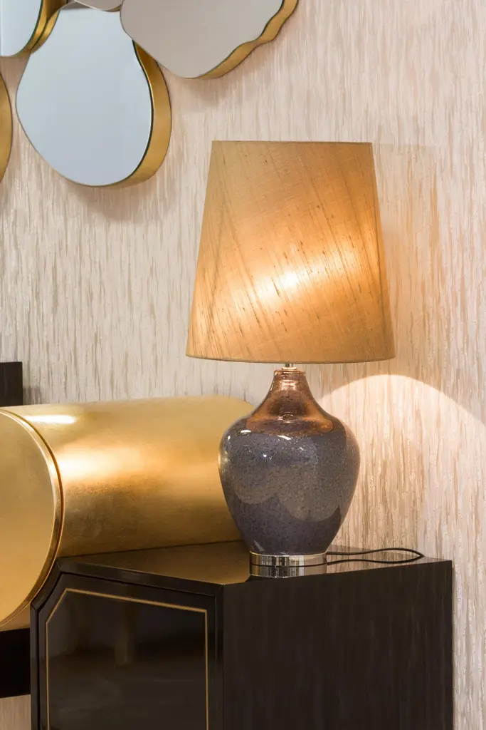 Set/2 Modern Table Lamps, Glass Base, Silk Lampshade, Handcrafted in Portugal - Europe by GF Modern.This is an elegant table lamp and an attractive addition to a modern home. The dark grey glass and polished stainless steel gracefully combine with the brown silk lampshade.Modern Table Lamps Material CodesME001 Polished stainless steelGlass Base Dark GreyBrown wild silk fabric shadeEL002 E27 LED lampHandcrafted in Portugal - Europe by GreenappleUnique by design, Crafted by peopleFounded in 2005 by Sérgio Rebola and Rute Martins, Greenapple designs and produces in-house luxury furniture for exclusive customers worldwide.Our own in-house production facility allows us to be obsessed with detail, and gives us the freedom to dedicate ourselves to the most demanding tailor-made and customized work. As Rute designs all the unique pieces, Sérgio assures the high-quality standards through the whole process - from design to production; from production to your home. Fine craftsmanship, whether perfected by experienced hands or state-of-the-art machinery is quintessential in delivering top quality experiences.