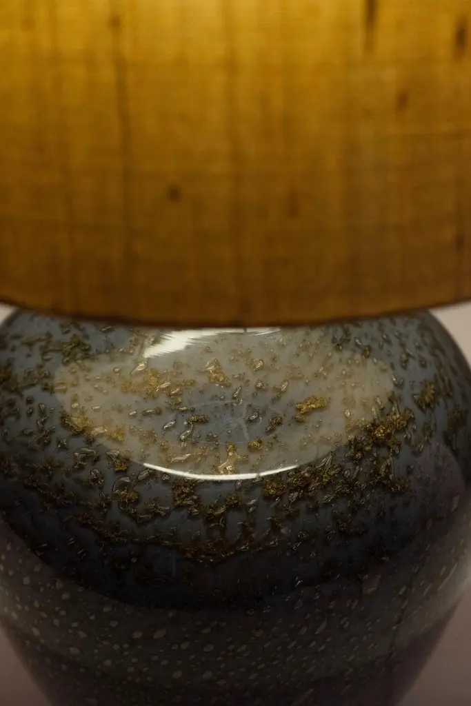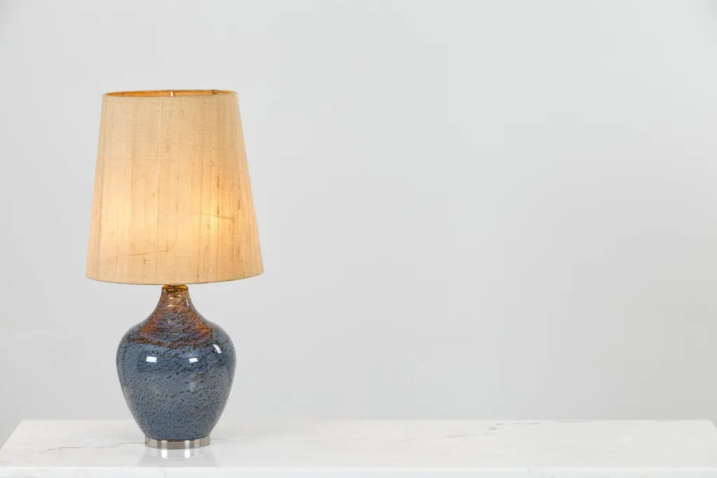 Set/2 Modern Table Lamps, Glass Base, Silk Lampshade, Handmade By Greenapple