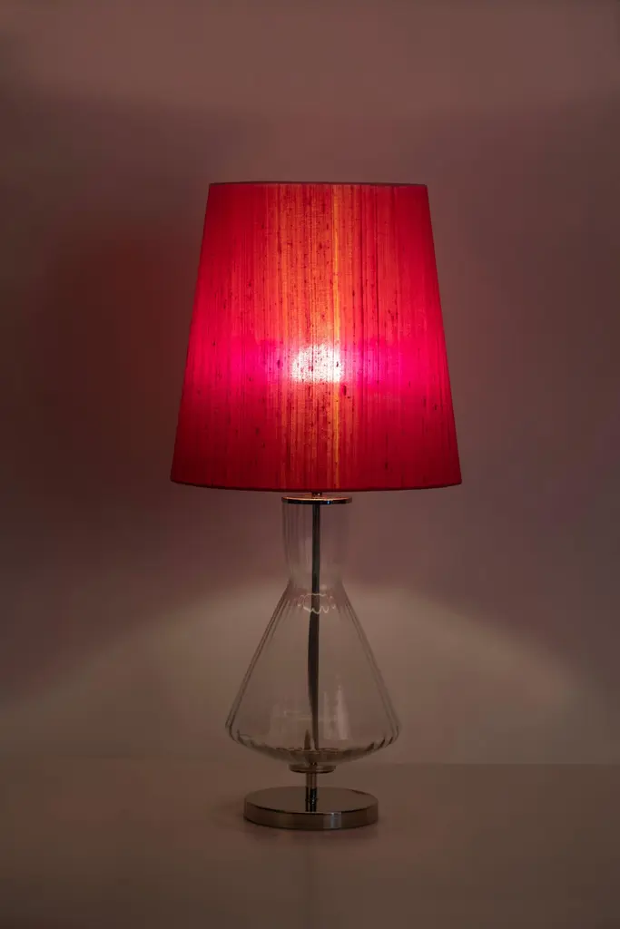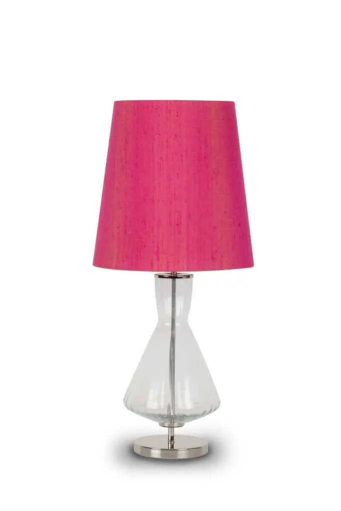 Set/2 Modern Table Lamps, Glass Base, Silk Lampshade, Handcrafted in Portugal - Europe by GF Modern.This is an elegant table lamp and an attractive addition to a modern home. The clear glass and polished stainless steel gracefully combine with the fuchsia silk lampshade.Modern Table Lamps Material CodesME001 Polished stainless steelGlass Base ClearFuchsia wild silk fabric shadeEL002 E27 LED lampHandcrafted in Portugal - Europe by GreenappleUnique by design, Crafted by peopleFounded in 2005 by Sérgio Rebola and Rute Martins, Greenapple designs and produces in-house luxury furniture for exclusive customers worldwide.Our own in-house production facility allows us to be obsessed with detail, and gives us the freedom to dedicate ourselves to the most demanding tailor-made and customized work. As Rute designs all the unique pieces, Sérgio assures the high-quality standards through the whole process - from design to production; from production to your home. Fine craftsmanship, whether perfected by experienced hands or state-of-the-art machinery is quintessential in delivering top quality experiences.