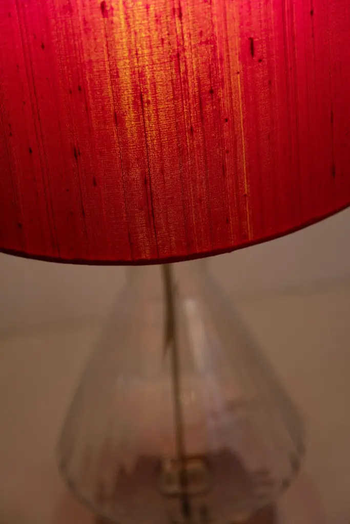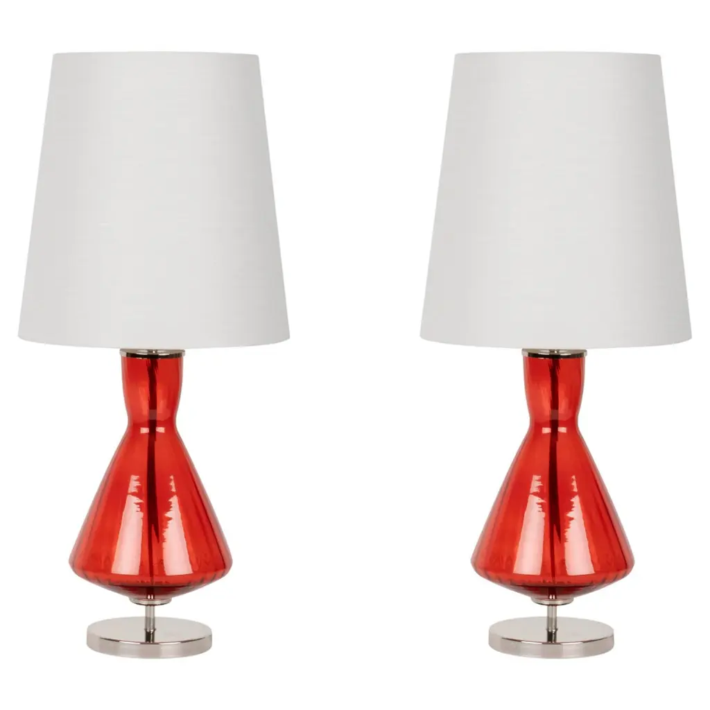 Set/2 Modern Table Lamps, Glass Base, Silk Lampshade, Handmade By Greenapple
