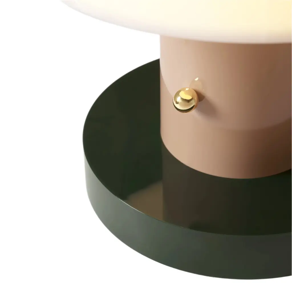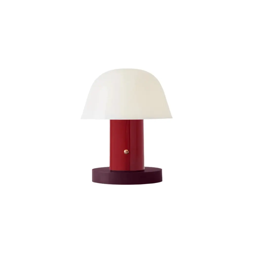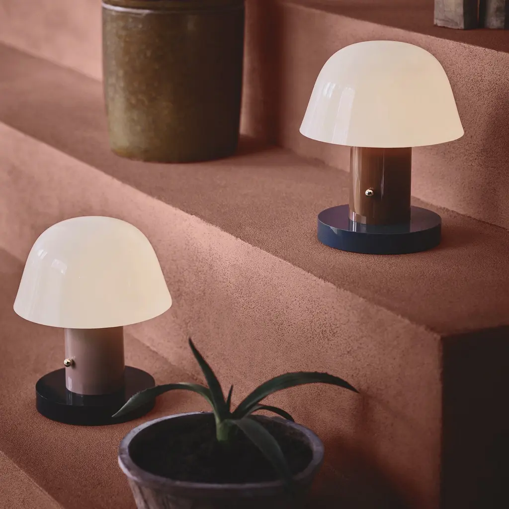 ‘Seta’ the Spanish word for mushroom sets the tone for the diminutive, mushroom-like proportions of this quirky table lamp. But a further clue to its identity is signified by the suffix ‘go’ because this portable lamp unburdened by an electrical cord can literally move anywhere. Additional design features include a discreet gold dimmer and a stylish upward curve on the lamp shade’s brim. Features