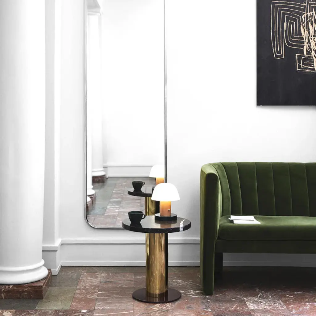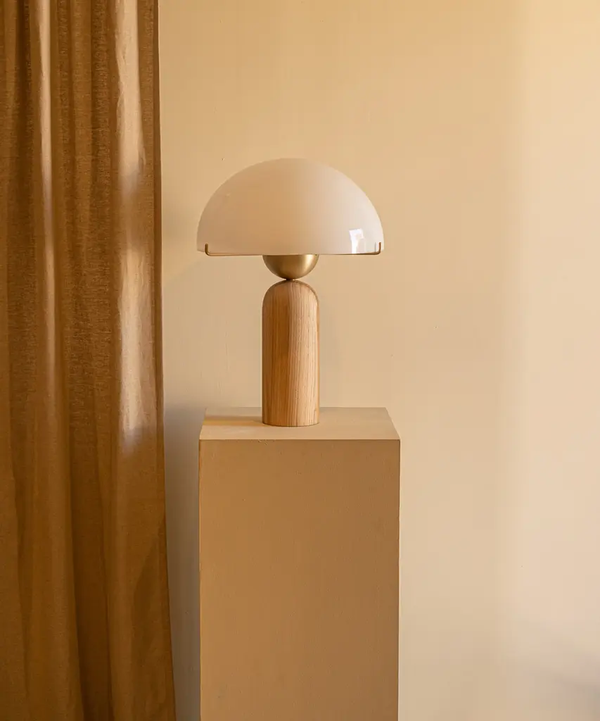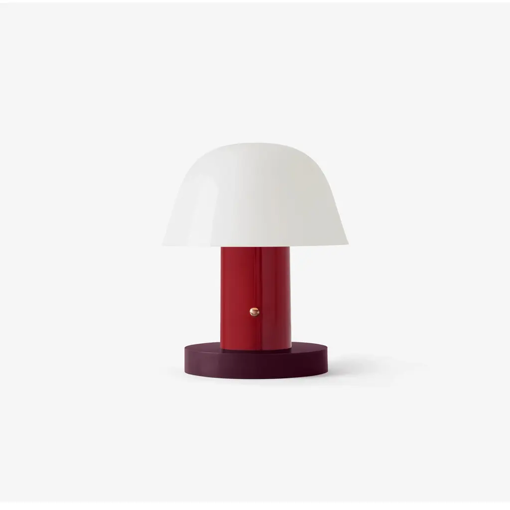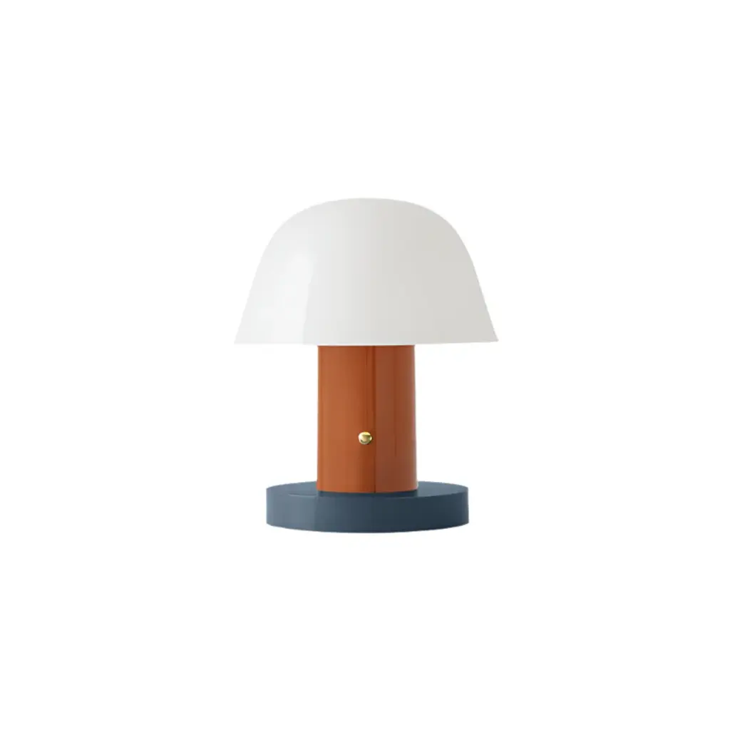 ‘Seta’ the Spanish word for mushroom sets the tone for the diminutive, mushroom-like proportions of this quirky table lamp. But a further clue to its identity is signified by the suffix ‘go’ because this portable lamp unburdened by an electrical cord can literally move anywhere. Additional design features include a discreet gold dimmer and a stylish upward curve on the lamp shade’s brim. Features