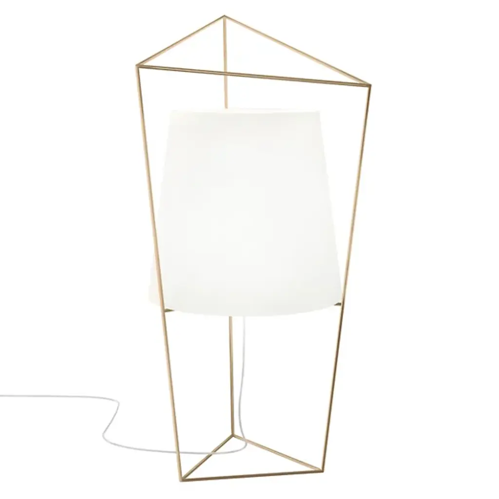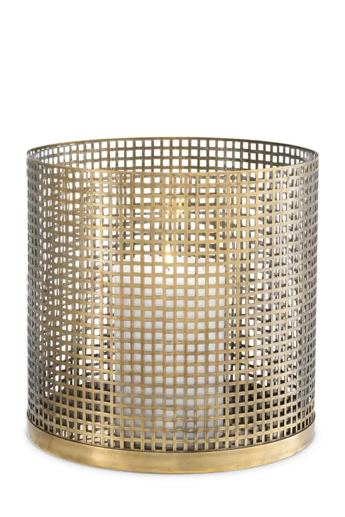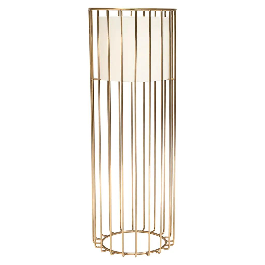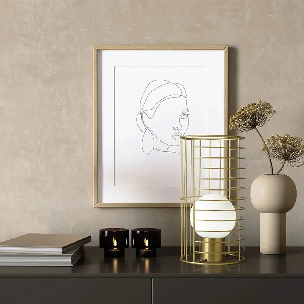 SETTI is a round bar table lamp with brushed gold finish. Internal opal glass diffuser. Black 150 cm power supply cord. Compatible with dimmable E27 LED light bulbs. Source E27 LED DIMMABLE | Power 1 x max 20w