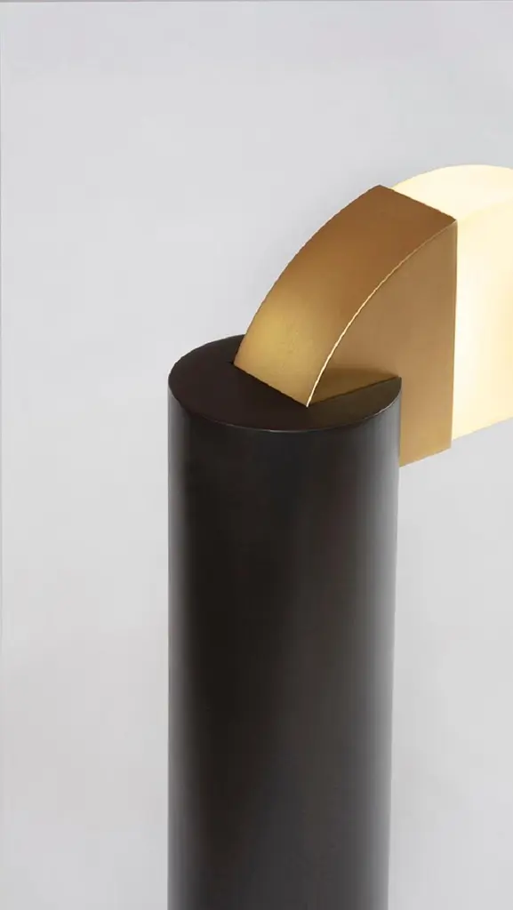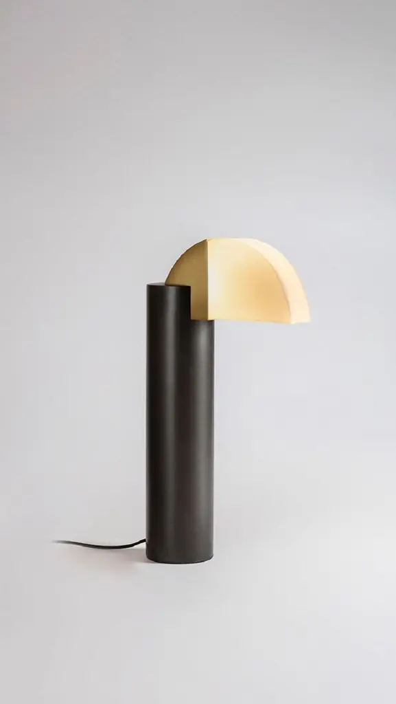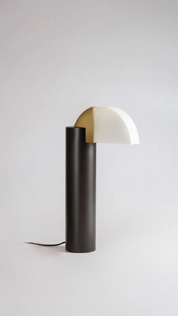 Shadow Table Lamp by Square in CircleDimensions: D 5 x W26.5 x H47 cmMaterials: Brushed grey metal/ brushed brass/ white frosted glassOther finishes available.This table lamp was inspired by the Laszlo Moholy-Nagy painting Segments, in which the artist explores the way to represent light and shadows in the form of semi-circles. The lamp's cylindrical base bears a brushed grey metal finish with a semicircular element attached to the top. One side of the semi-circle is crafted from brushed brass, the other from frosted glass.Square in circle is a London-based design studio founded in 2019. The studio explores lighting design in minimal, geometric forms inspired by the Modernist Era. Materials such as marble, metal and glass combine to make each sculptural piece a 'total and complete work of art', as in the manner of Gesamtkunstwerk.All our lamps can be wired according to each country. If sold to the USA it will be wired for the USA for instance.