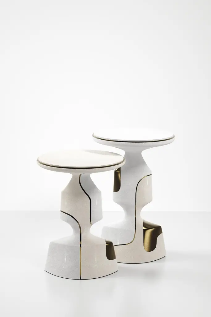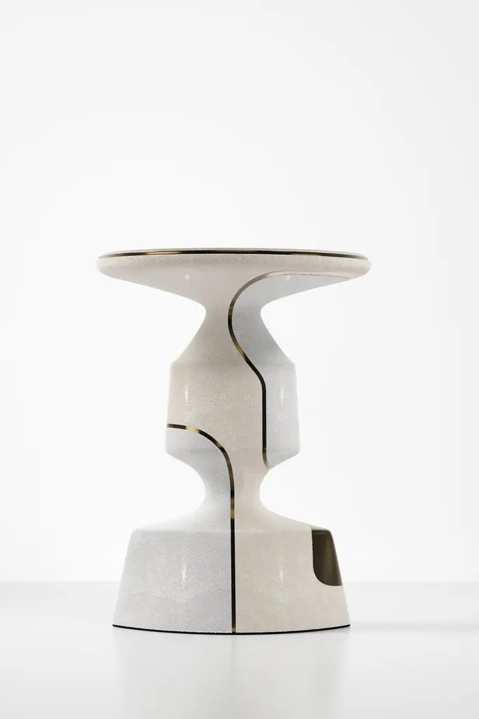 Shagreen Sculptural Side Table With Shell And Brass Details By R&y Augousti