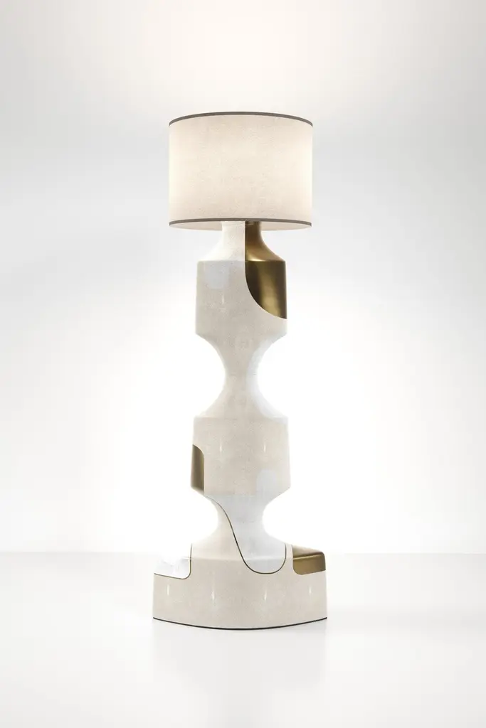 The Paris based label has distinguished themselves since their launch, with their iconic use of shagreen mixed with brass and other exotic materials. All furniture is handcrafted by skilled artisans, ultimately making each piece unique, designed in Paris and produced in the Philippines.The Artemis Sculptural Side Table II is a graphic piece that adds a statement to any space. The bold pattern is inlaid in a mixture of black shagreen, dark pen shell and bronze-patina brass. This sculptural table is also available in a smaller size (and can nest together as a pair), as a floor lamp, table lamp and vases (see images at end of slide) . Custom finishing and sizing available on request.The dimensions of this piece are 40 x 26 x 65 cm, top diameter is 45 cmAll R & Y Augousti pieces are handmade by artisans, ultimately making each piece unique.Wipe clean with soft dry cloth.Acclaimed design duo Ria & Yiouri Augousti have established themselves since the 1990s as pioneers of modern-vintage style through their luxurious Art Deco inspired collections.The Paris based label has distinguished themselves since their launch, with their iconic use of shagreen mixed with brass and other exotic materials. All furniture is handcrafted by skilled artisans, ultimately making each piece unique. All shagreen-covered items should be kept out of direct sunlight, color variants may occur on the stingray and other exotic finishes, but this showcases the Parisian label's commitment to creating authentic luxurious products using natural components.
