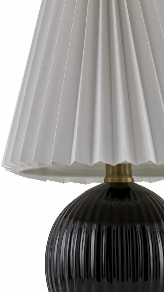 Collection: Shahrekord Colors: Black, White, Translucent Material: Body: Ceramic / Shade (Outside): Linen / Shade (Inside): Polystyrene Styles: Contemporary Made In: China Lighting Type: Accent Table Lighting Shade Material: Linen, Polystyrene Shade Color: White, White Cord Length: 6' Switch Type: On/Off Number of Bulbs: 1 Socket Type: E-26 Bulb Wattage: 40W