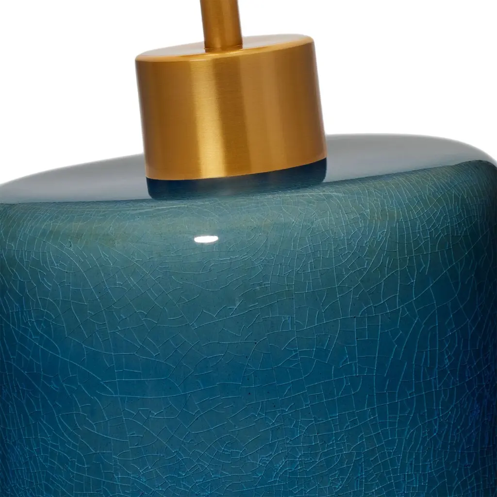 Crackle textured table lamps inspired by earthy tones that help bring the outdoors inside and add a warmth to the room.
