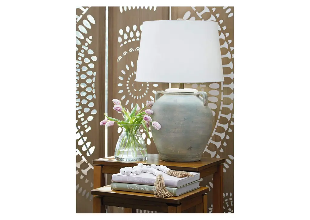 If casual and cool is your style, the Shawburg is the table lamp you’ve been looking for. A soothing antiqued green finish on the terra cotta base creates a relaxed charm that seamlessly blends with other decor in your entertainment space, home office or restful retreat. What a bright idea. Weight 24.000 lbs. (10.8kgs.)