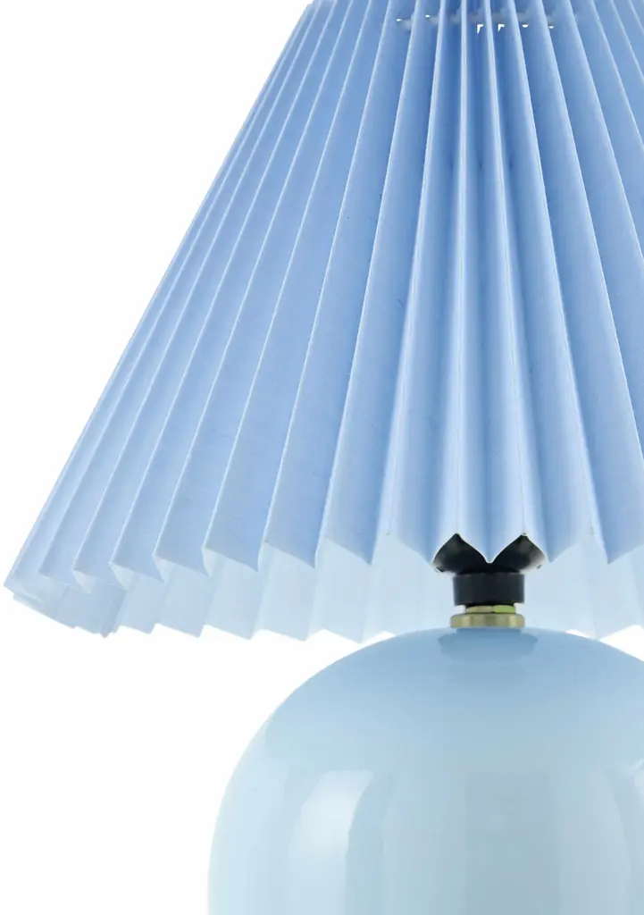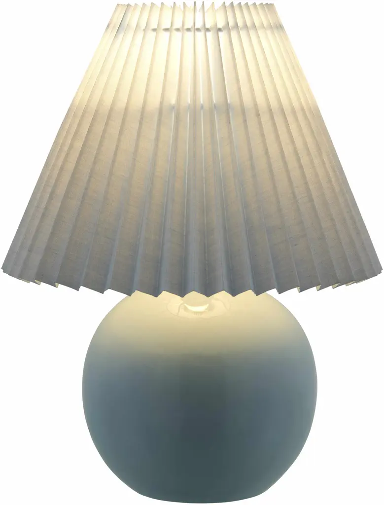Collection: Shcheglovo Colors: Blue, Navy, White, Translucent Material: Body: Ceramic / Shade (Outside): Polyester / Shade (Inside): Polystyrene Styles: Transitional,Traditional Made In: China Lighting Type: Accent Table Lighting Shade Material: Polyester, Polystyrene Shade Color: White, Bright Blue Cord Length: 6' Switch Type: Rotary Number of Bulbs: 1 Socket Type: E-26 Bulb Wattage: 25W