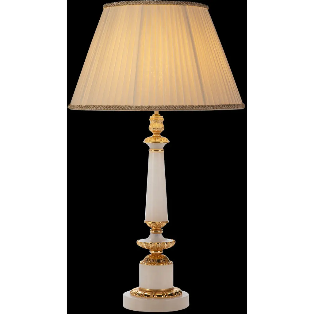 Finish: shiny gold 24K. Other finishes on request.Color: transparent with Sheen effect. Other colors on request.Details: Central body in glass hand-blown, made in Tuscany.Glass cup made in Venice.All glass components are in transparent color and after decorated with gold leaf. This decoration is called Sheen and it is perceptible to the touch and visually.Sheen: Embellished with floral elements, in metal handmade and with silver weldings.They are decorated in 24k gold finish. It’s possible to personalized floral elements by decorating them with colored enamel.Sheen twin : The version without floral elements. Enriched with Swarovski pendant.Shade 34/63 mod. high cone with pvc lurex and brown organza plisse’.Shade 34/64 mod. high cone with brown organza plisse’and pleated ivory fabric.