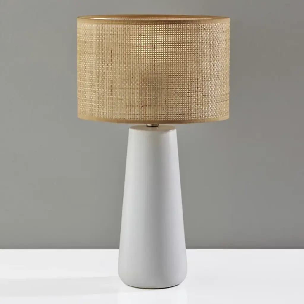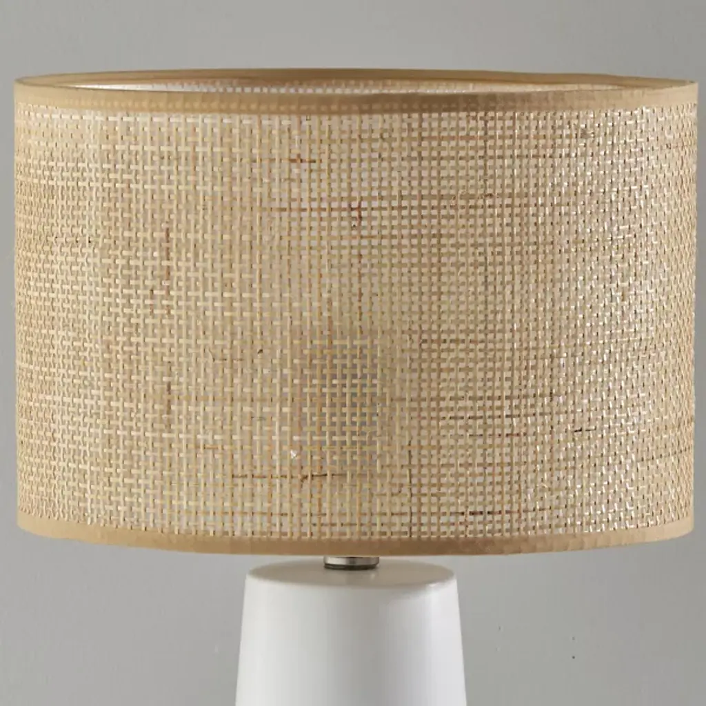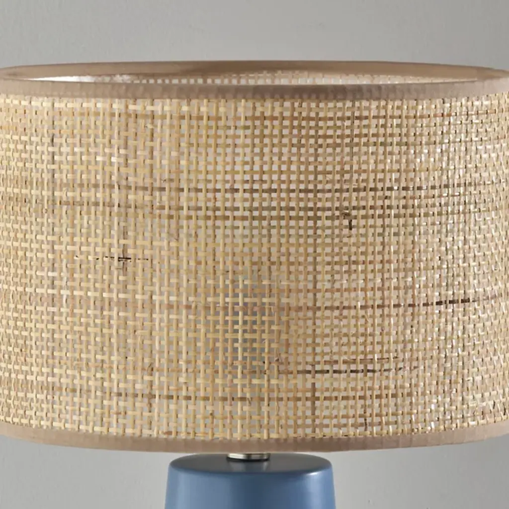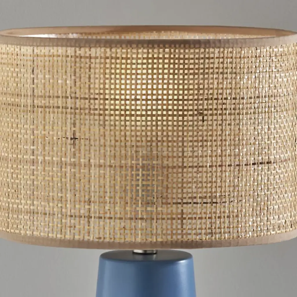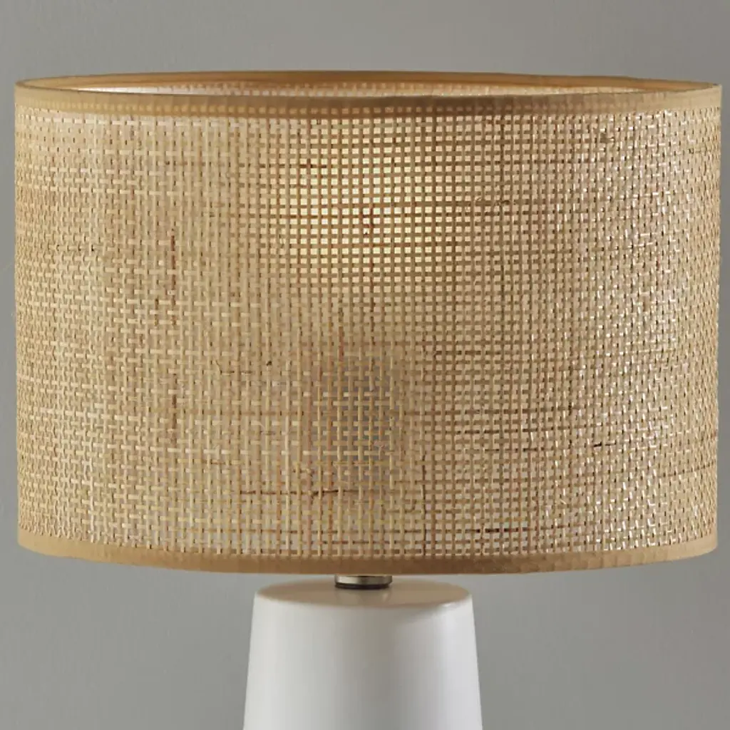 With soft curves and a warm, coastal design, the Sheffield Table Lamp by Adesso beautifully complements your nightstands, desks, or accent tables. This table lantern features a short, round base crafted of fine ceramic, leading to a tall natural rattan drum shade. The woven rattan shade softly disperses light from an incandescent bulb and is trimmed in fabric along the top and bottom, complementing the base.