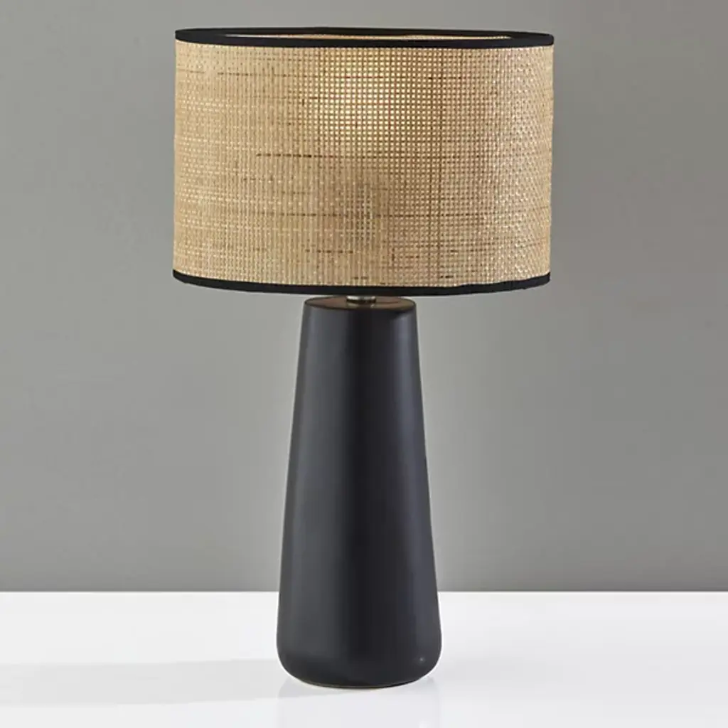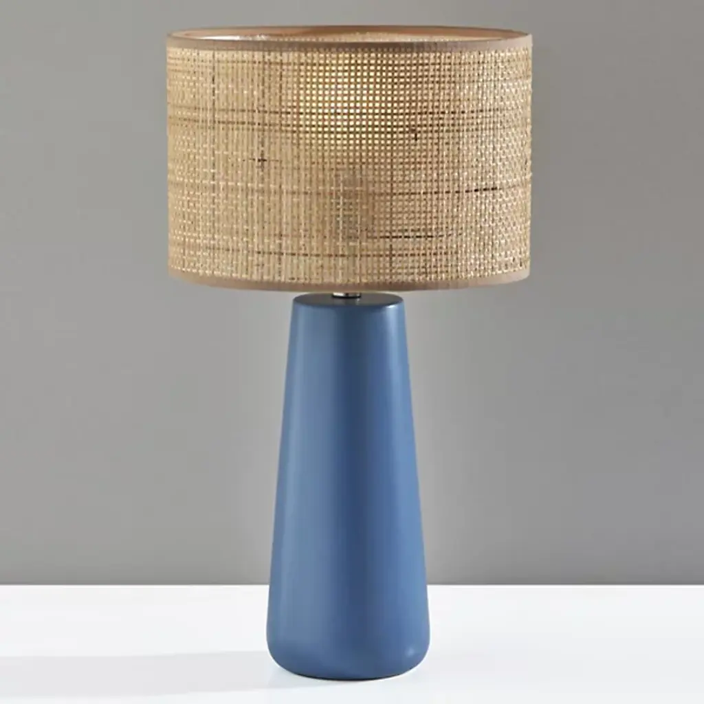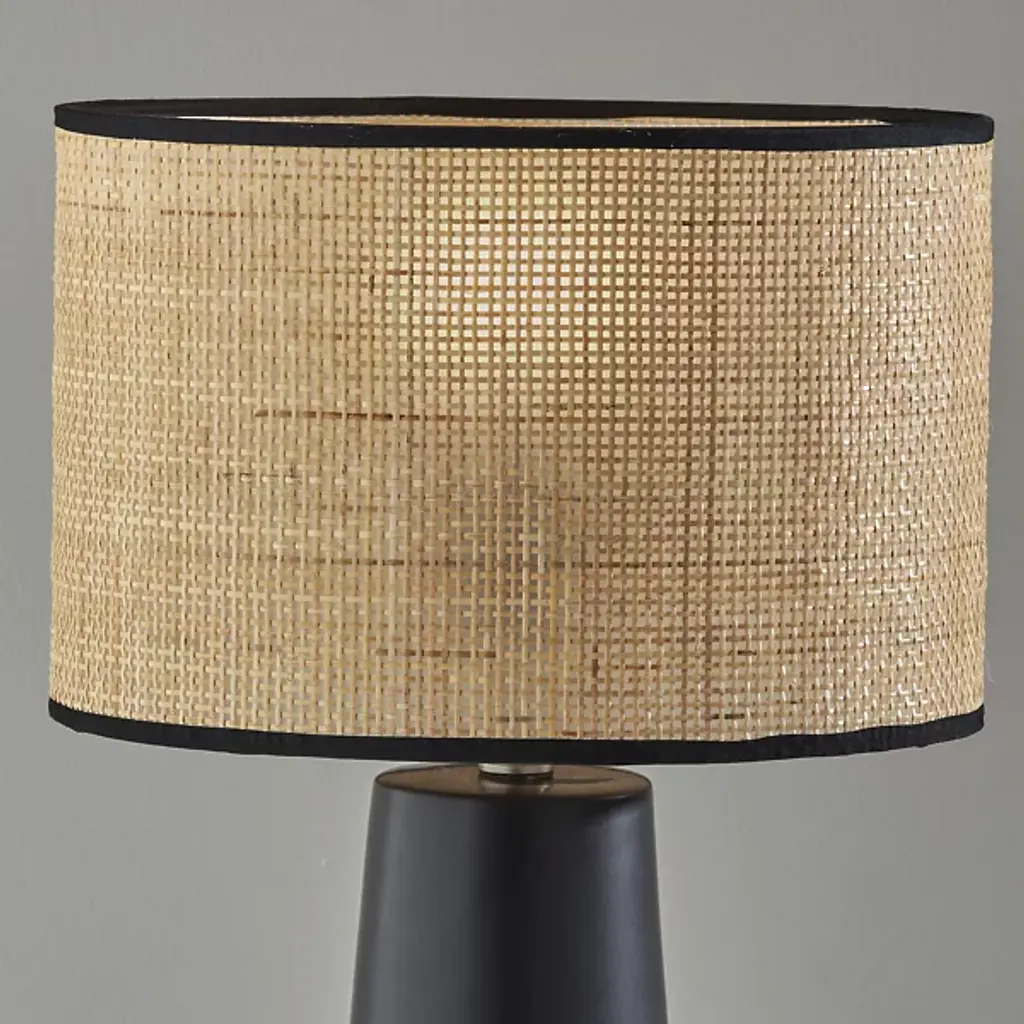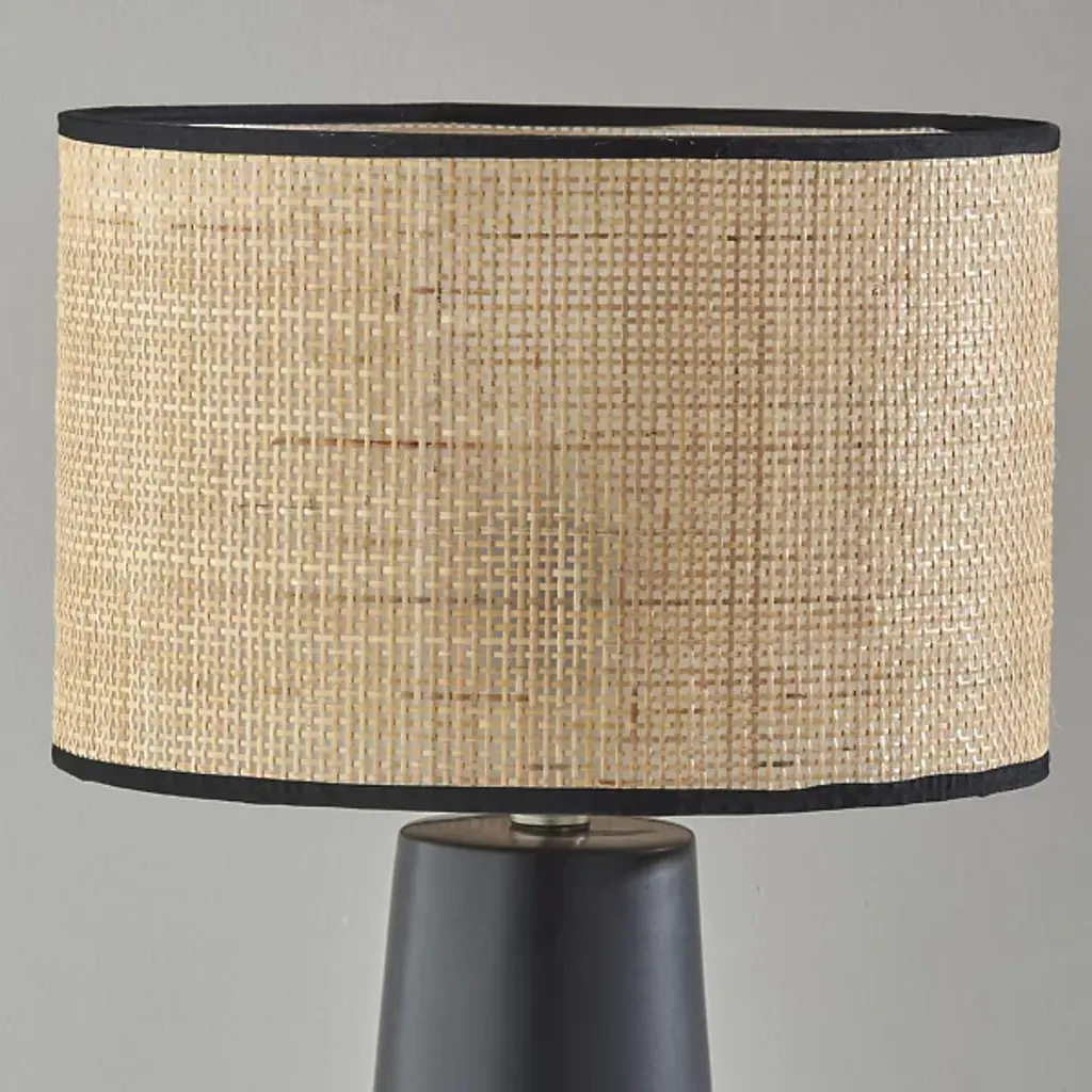 With soft curves and a warm, coastal design, the Sheffield Table Lamp by Adesso beautifully complements your nightstands, desks, or accent tables. This table lantern features a short, round base crafted of fine ceramic, leading to a tall natural rattan drum shade. The woven rattan shade softly disperses light from an incandescent bulb and is trimmed in fabric along the top and bottom, complementing the base.