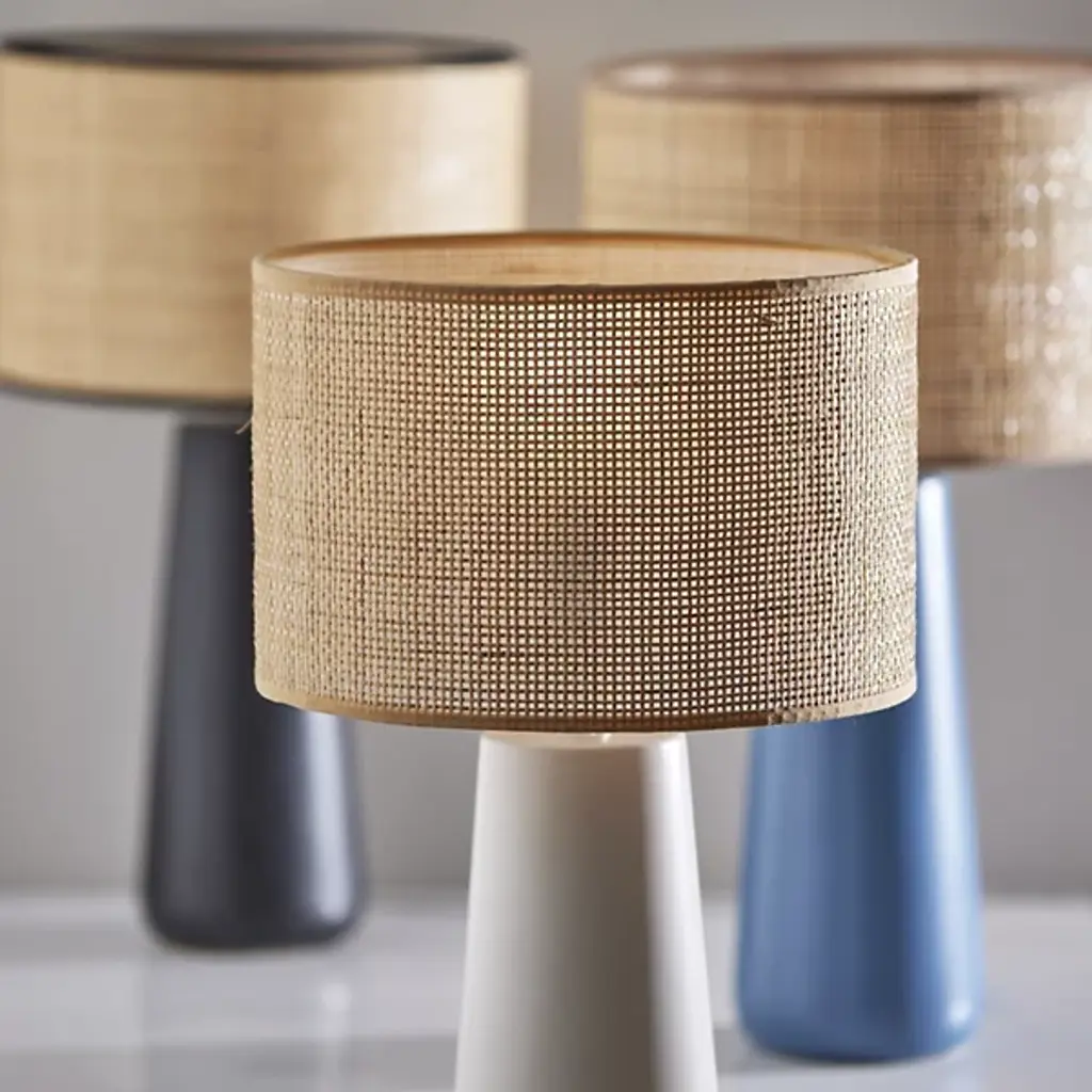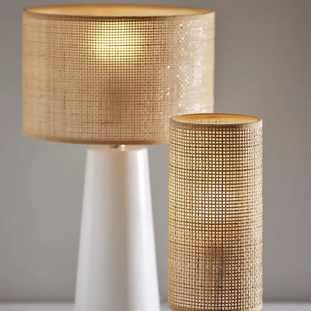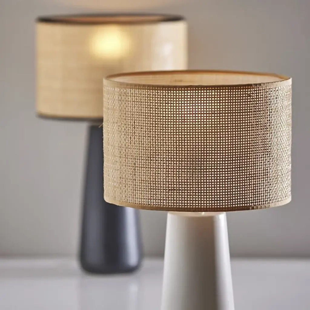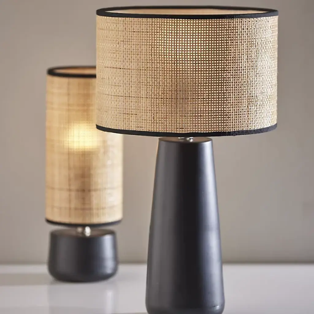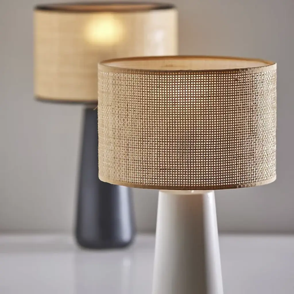 With soft curves and a warm, coastal design, the Sheffield Table Lamp by Adesso beautifully complements your nightstands, desks, or accent tables. This table lantern features a short, round base crafted of fine ceramic, leading to a tall natural rattan drum shade. The woven rattan shade softly disperses light from an incandescent bulb and is trimmed in fabric along the top and bottom, complementing the base.