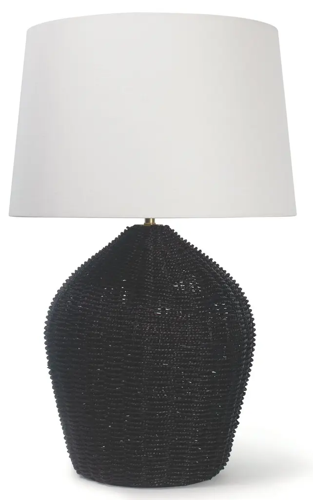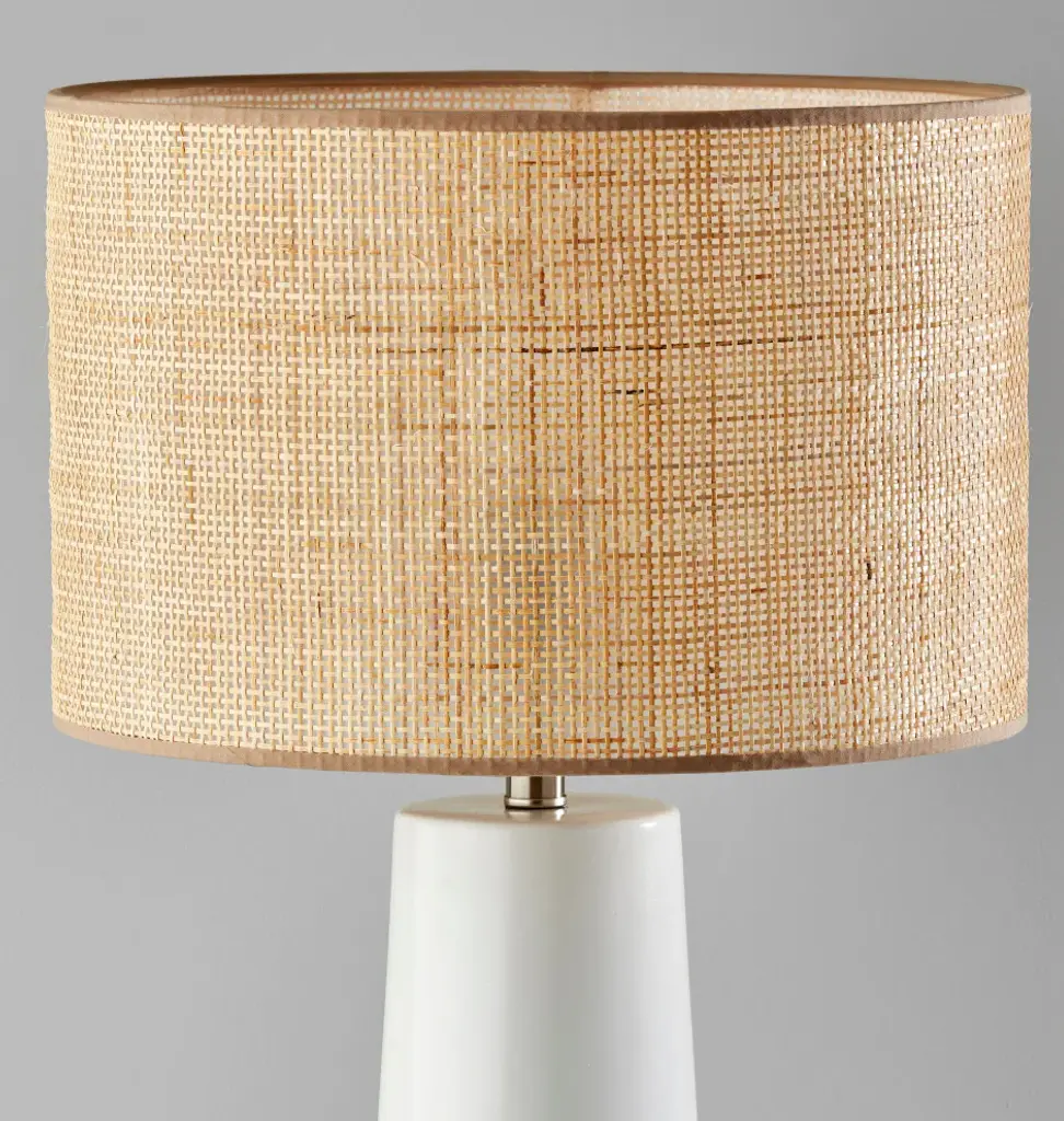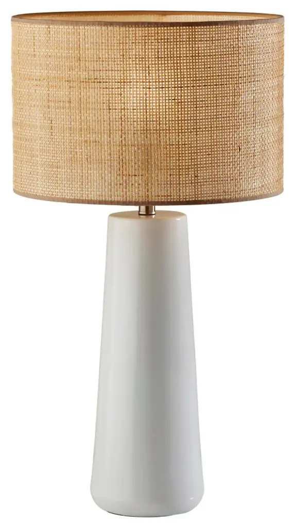 Defined by clean lines and rich materials, the Sheffield tall table lamp blends in seamlessly with farmhouse, contemporary, or coastal décor. An 18" tall cylindrical and gently tapering base crafted of white ceramic is topped by a woven natural rattan shade. The lamp shade softly disperses the light from a 150W bulb and is trimmed with beige fabric along the top and bottom to complement the white base. For versatile lighting options, a 3-way rotary socket switch easily adjusts the brightness between low, medium, high, and off. The Sheffield tall table lamp is also available with a black ceramic base for a contrasting look or with a cornflower blue ceramic base for a pop of color.At 30" tall and 16" deep, this lamp is perfectly suited for accent tables, end tables, and nightstands.Pairs well with farmhouse, contemporary, transitional, or coastal décor.The beige trim along the top and bottom of the lamp shade creates a polished look.Use a 3-way bulb to take advantage of the 3-way rotary socket switch with 3 brightness settings.Mix and match your furnishings with the black and cornflower blue versions of the Sheffield tall table lamp.E26 150W 3-WAY TYPE A BULB(NOT INCLUDED)