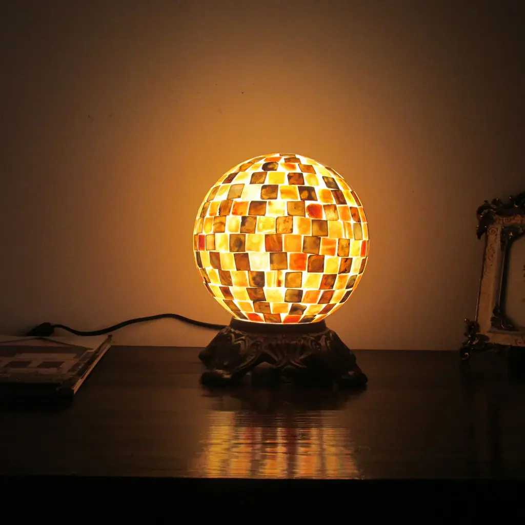 SHELLEY, a Mosaic style 1 light table lamp features beautiful seashells and ambient lighting. This piece is handcrafted from over 320 hand cut seashells, and has a gorgeous dark bronze finish, with shells that take on a brown to a light peach color. (1) 60 Watt E26 Type A Bulb (not included)Plug-in324 SeashellsAmbientIndoor SettingSince these are hand crafted products, the exact color of glass pieces may vary. Colors of the glass will appear darker and less vibrant when not illuminated. Handmade glass will vary from one piece to the other; glass made at different times will also vary. Light bulbs used in lamps or ambient lighting may affect the appearance of the products. Stained glass product has been protected with mineral oil as part of the finishing process. Please use a soft dry cloth to remove any excess oil.