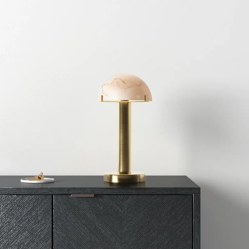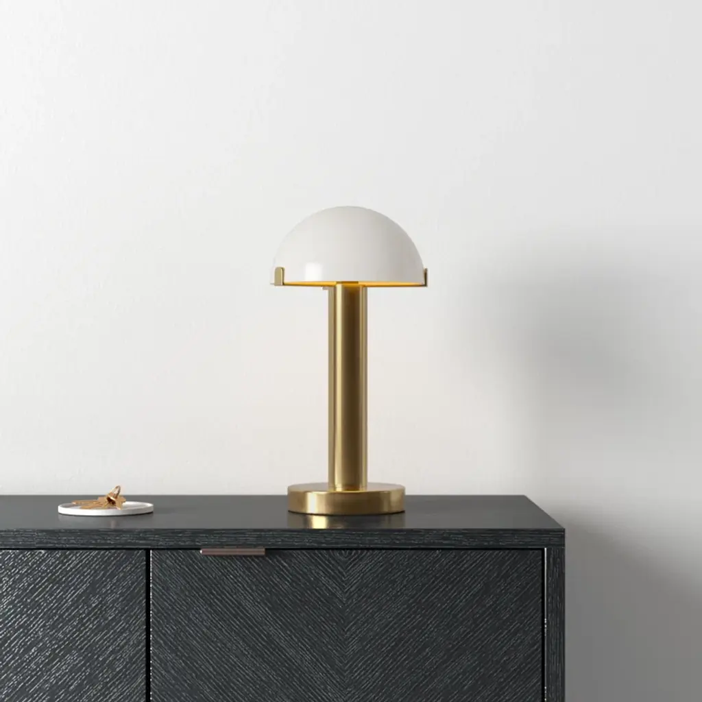 The unique lamp in the Ursula collection will create a statement in any space. Made of colored metal and a shade, this modern table lamp is sure to be a distinctive accent to any room. For optimal product care, wipe clean with a dry cloth.