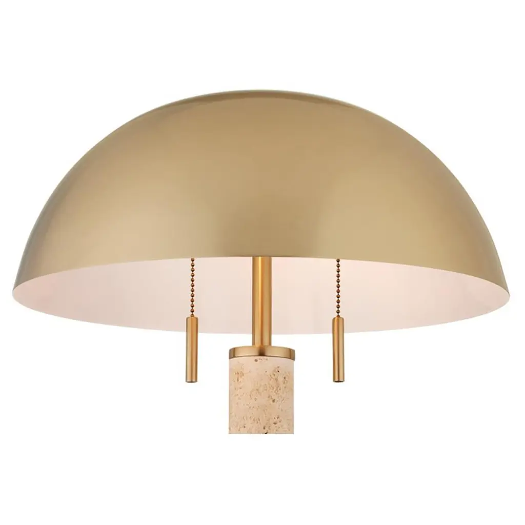 Shiloh Mid Century Beige Travertine Brass Table Lamp