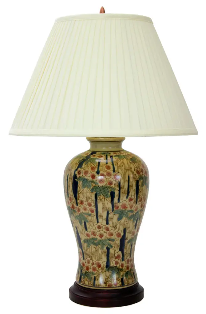 Shishen Cottage Classic Chinoiserie Ceramic Orb Led Table Lamp, Pleated Shade