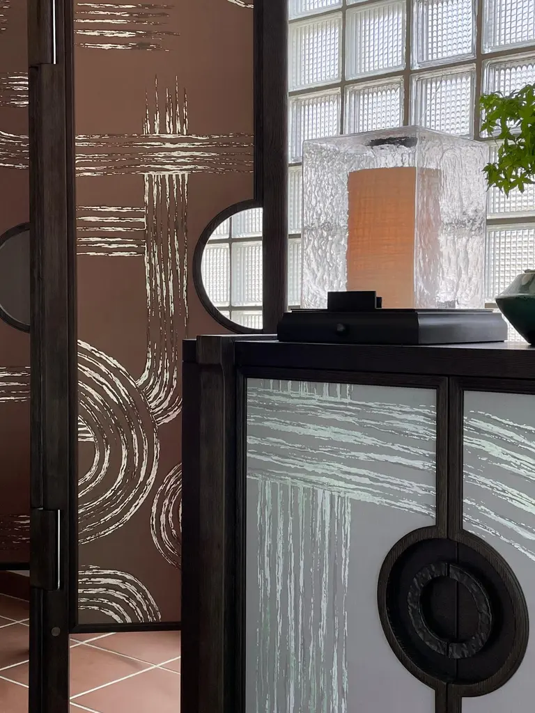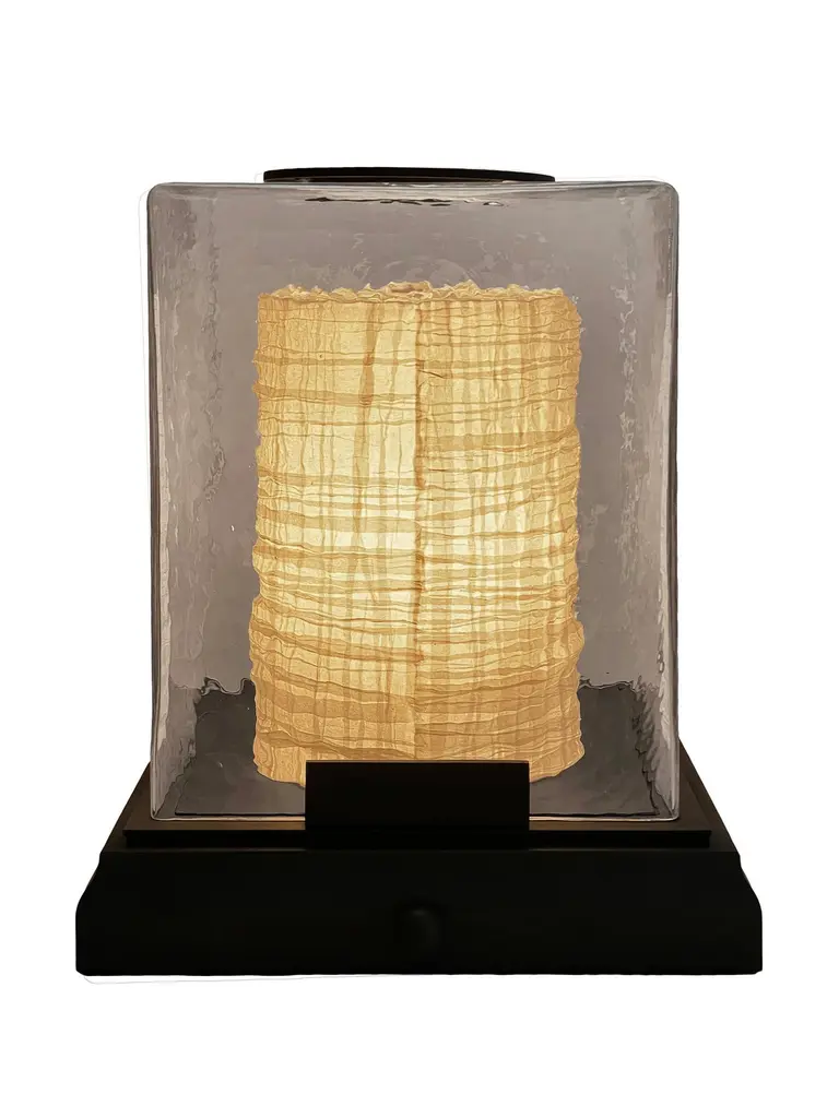 Description: Brass table lamp with outer ripple glass shade and inner washi paperOther plugs are available by request.