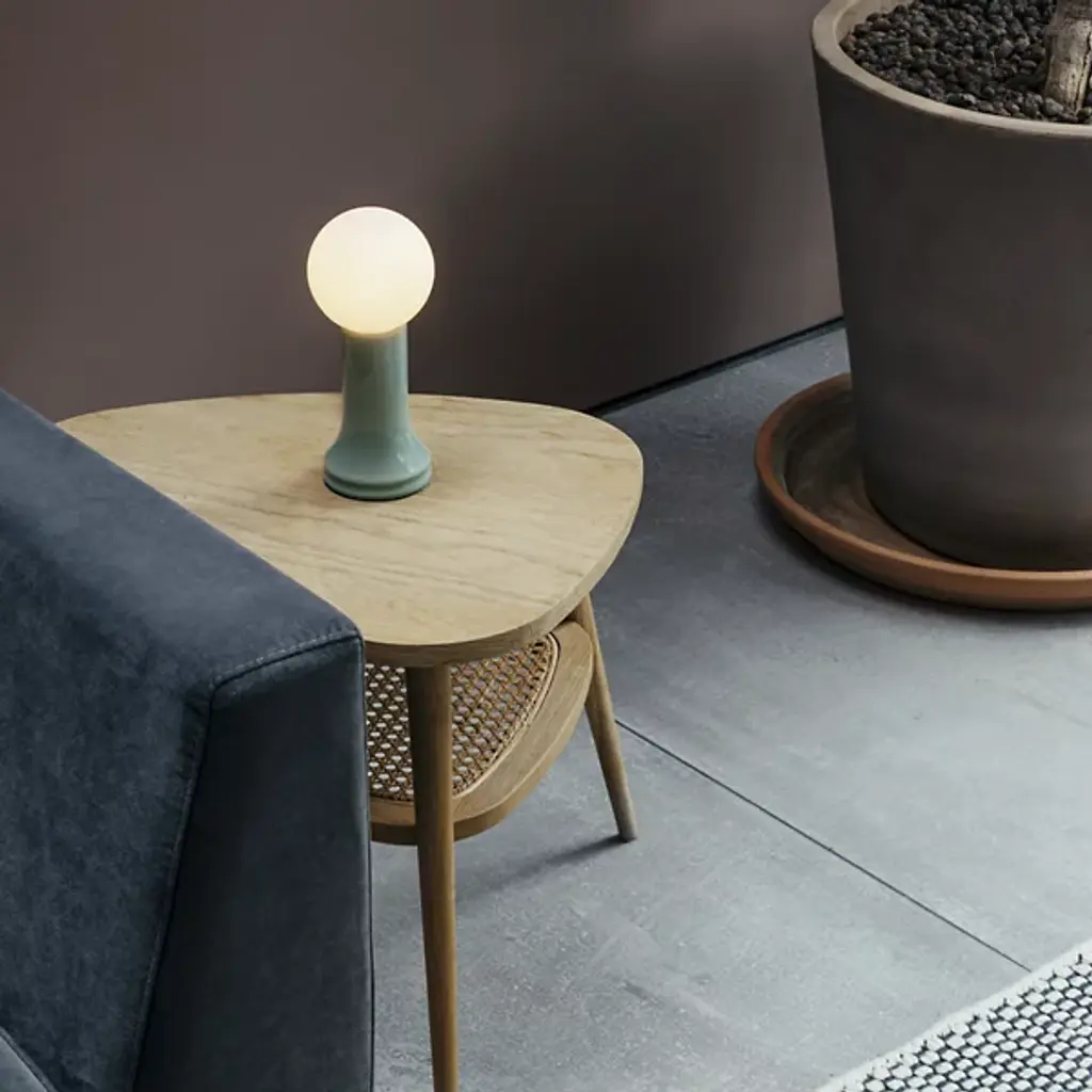 The Shore Table Lamp from Tala is the meeting point of contemporary design and sustainability. This elegant lamp features a globe shade crafted from mouthblown glass, exuding a timeless aesthetic. Its cylindrical base, composed of recycled mouthblown glass, adds an eco-friendly touch to your space. The shade is softly illuminated by an LED, creating a warm and inviting ambiance. With an inline button dimmer and innovative dim-to-warm technology, you have precise control over the lighting, allowing you to set the mood as you wish.