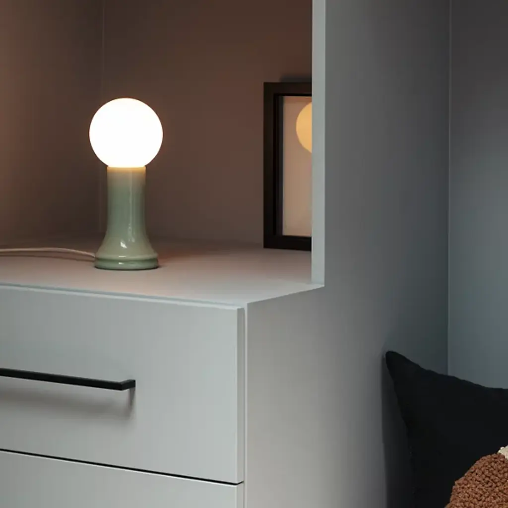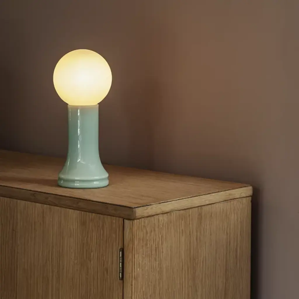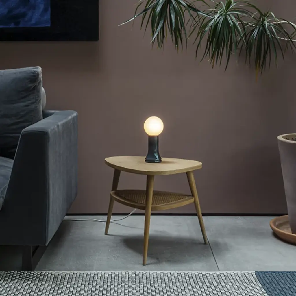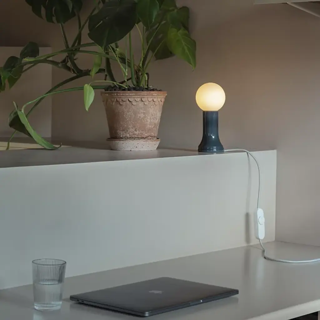 The Shore Table Lamp from Tala is the meeting point of contemporary design and sustainability. This elegant lamp features a globe shade crafted from mouthblown glass, exuding a timeless aesthetic. Its cylindrical base, composed of recycled mouthblown glass, adds an eco-friendly touch to your space. The shade is softly illuminated by an LED, creating a warm and inviting ambiance. With an inline button dimmer and innovative dim-to-warm technology, you have precise control over the lighting, allowing you to set the mood as you wish.