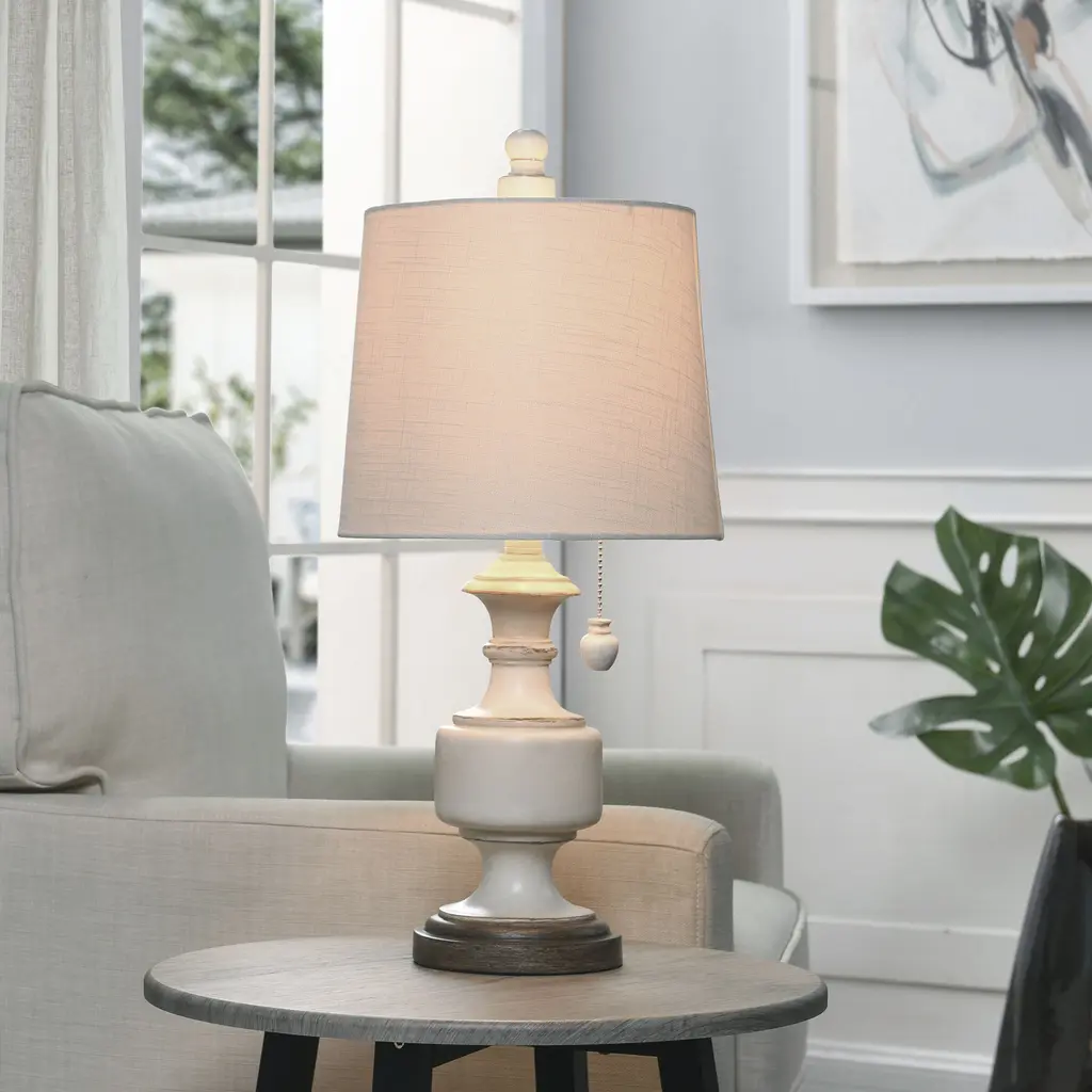 Signature 24.75 Inch 40 Watt Distressed Cream Table Lamp Portable Light