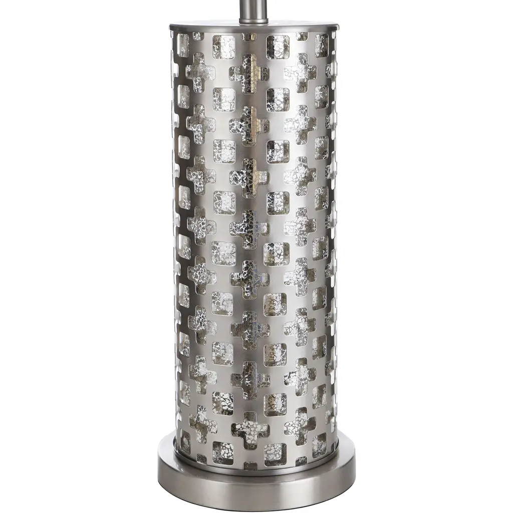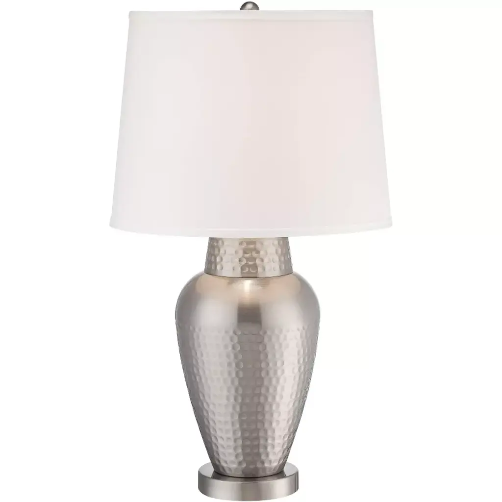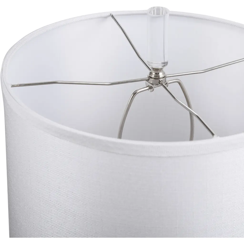 Estero Table Lamp - Brushed Steel Finish - White Hardback Fabric Shade