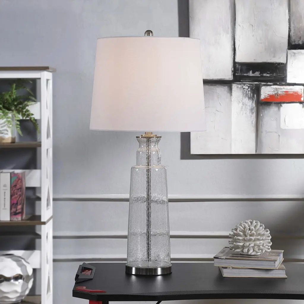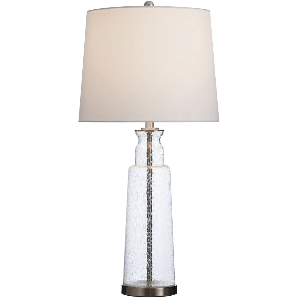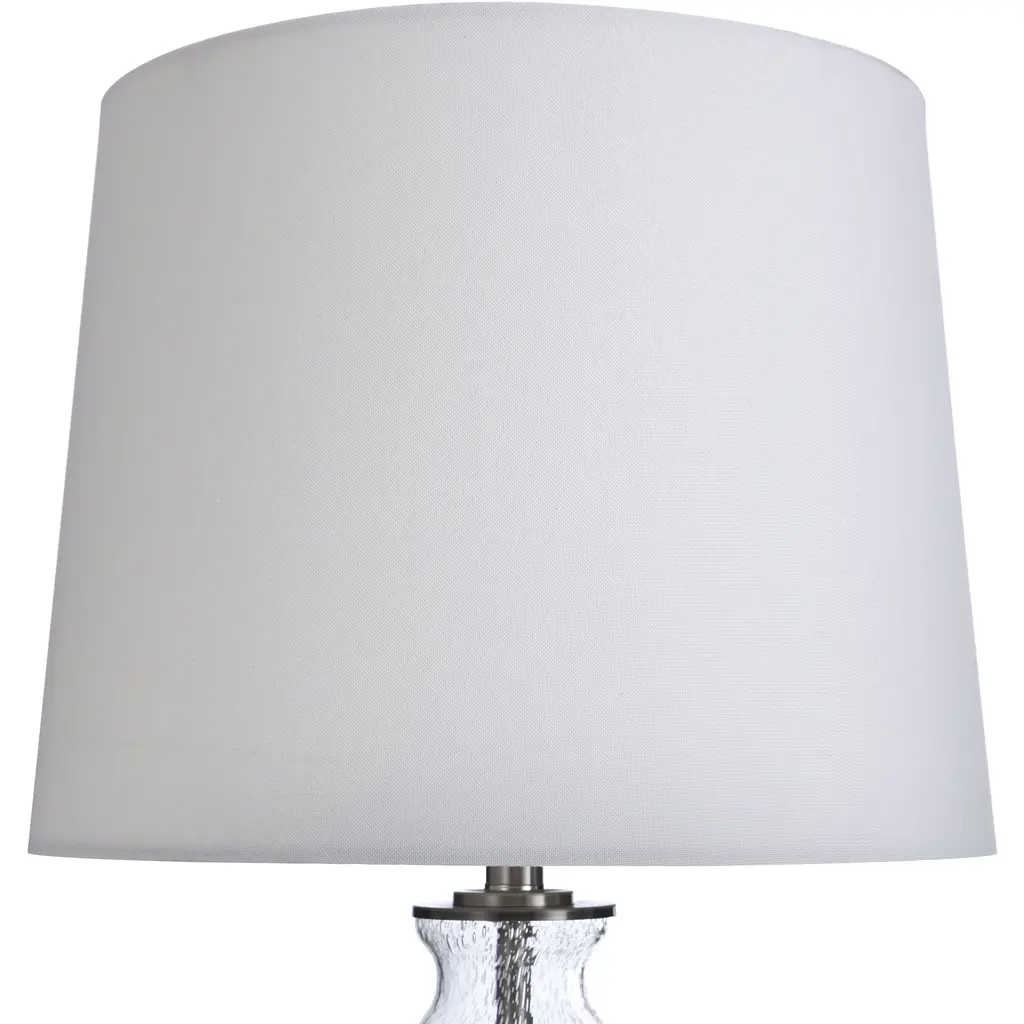 Table Lamp - Clear Seeded With Brass Steel Finish - White Hardback Fabric Shade