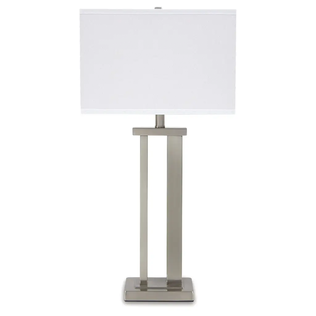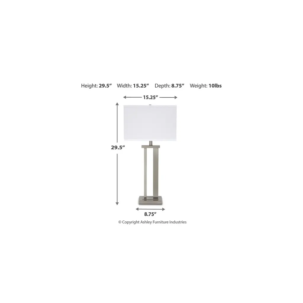 With a shiny finish and detailed clean lines, the Aniela is a winning table lamp. Its neutral design will pair back to almost any living space.Features:Made of metal with fabric hardback shade3-way switch1 type A bulb (not included); 100 watts max or CFL 23 watts max; UL ListedClean with a soft, dry clothAssembly required