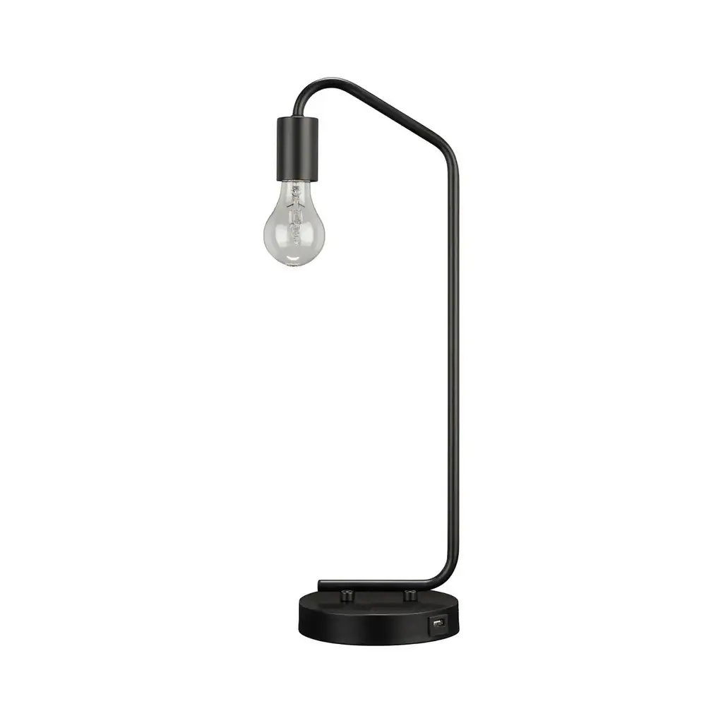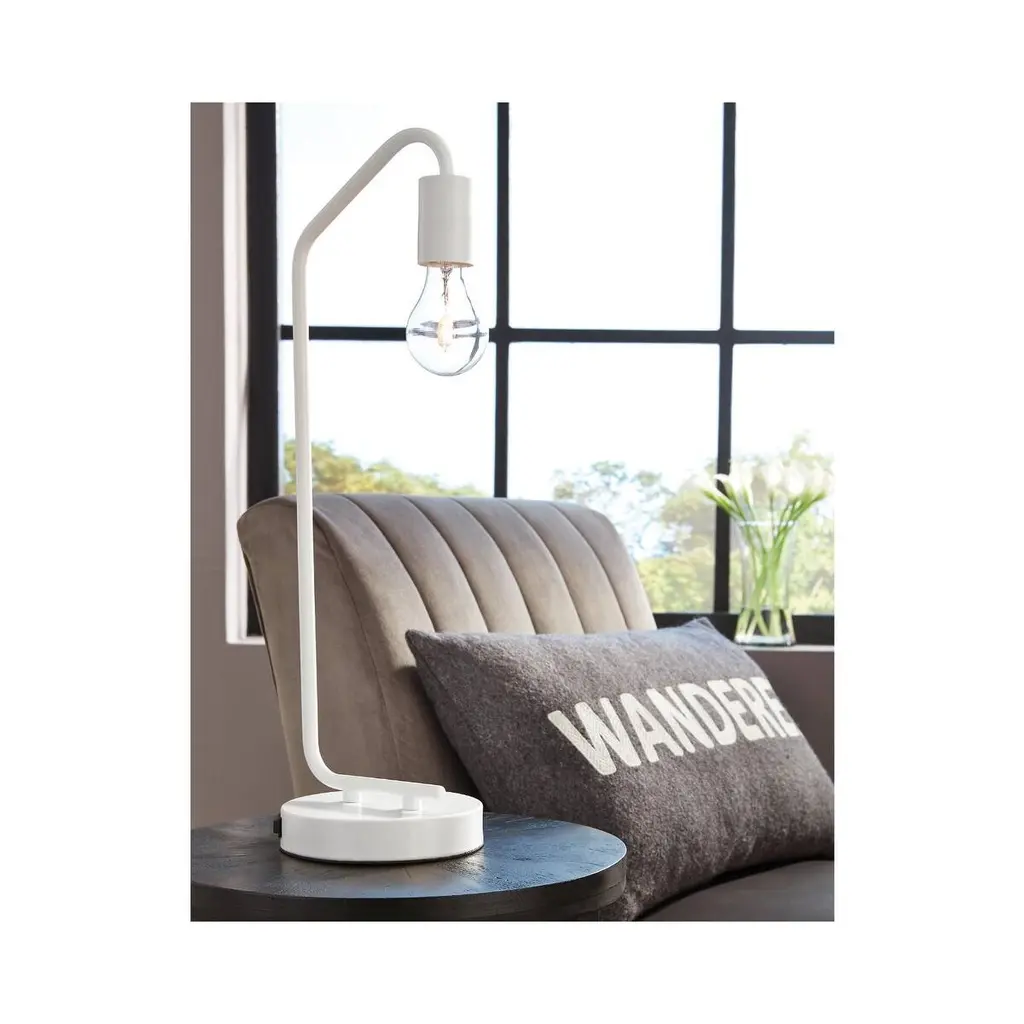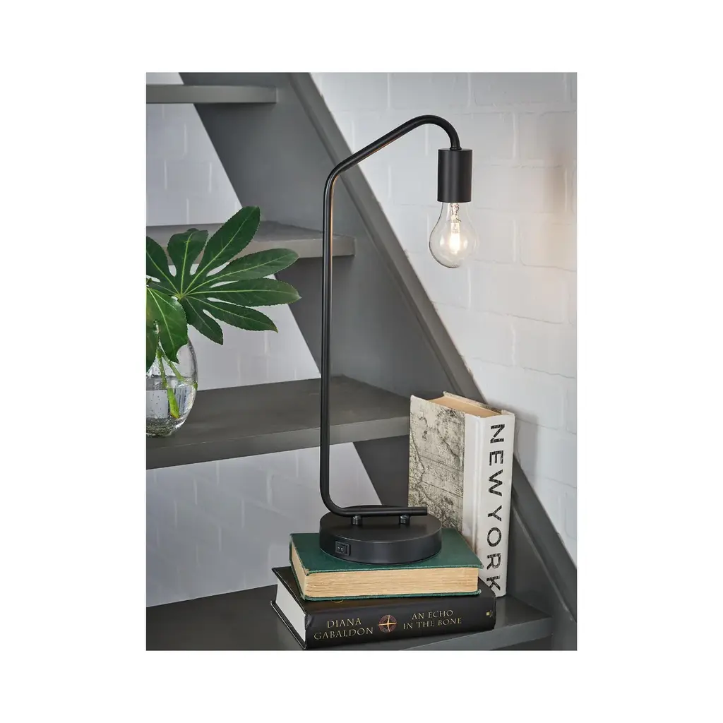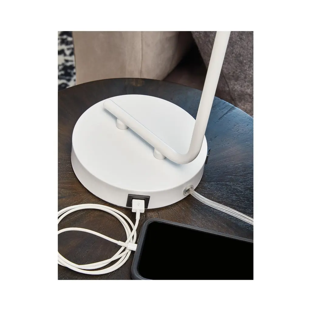 Minimalist, curved lines with a pleasant round base and socket are featured on the Ashley Furniture Covybend Metal Table Lamp. Suited for an office desk, den, or study -- this piece has a convenient USB port for your electronic charging needs. This lamp is designed to fit your casual style home or office décor. Features