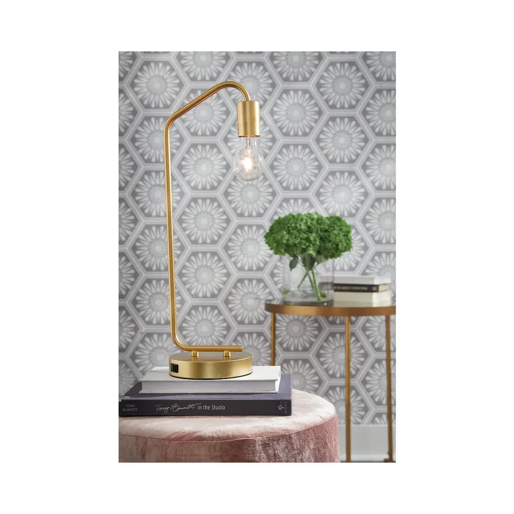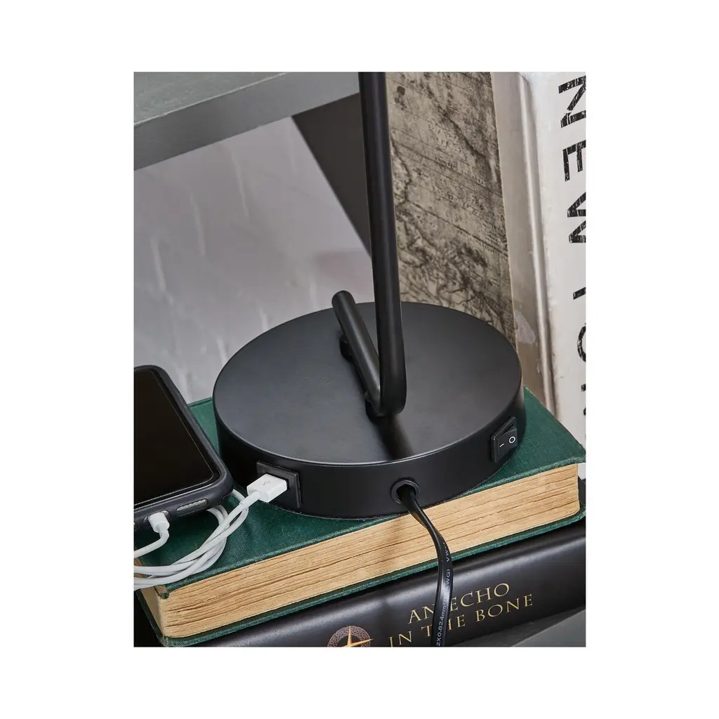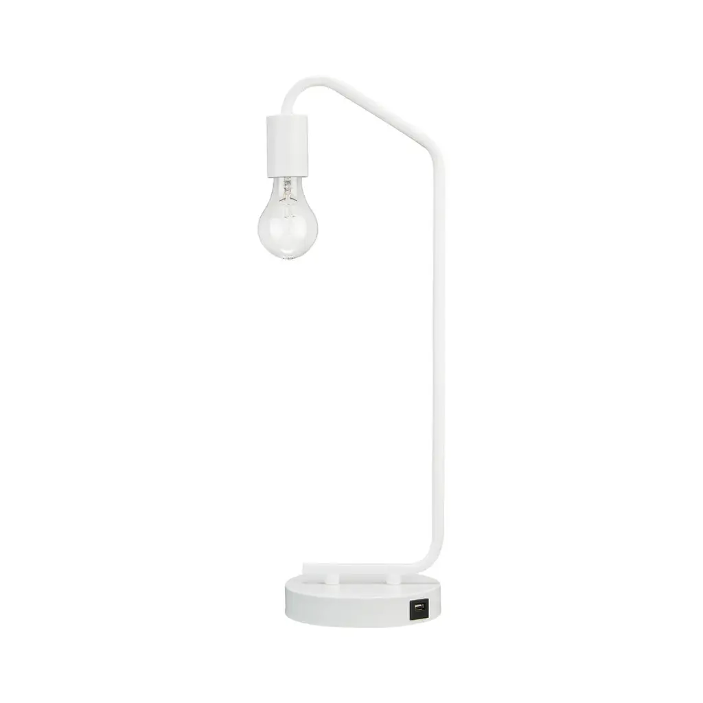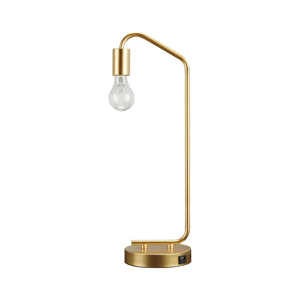 Minimalist, curved lines with a pleasant round base and socket are featured on the Ashley Furniture Covybend Metal Table Lamp. Suited for an office desk, den, or study -- this piece has a convenient USB port for your electronic charging needs. This lamp is designed to fit your casual style home or office décor. Features