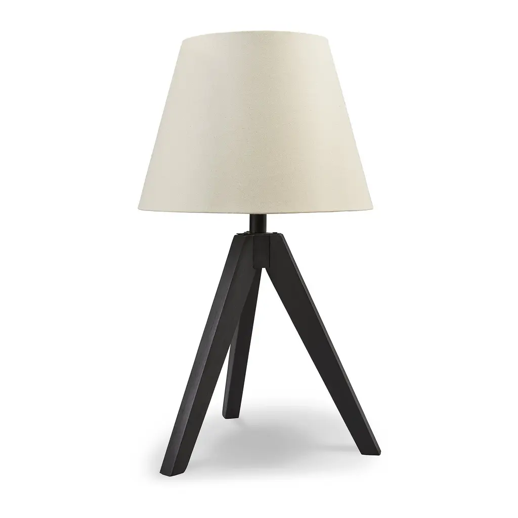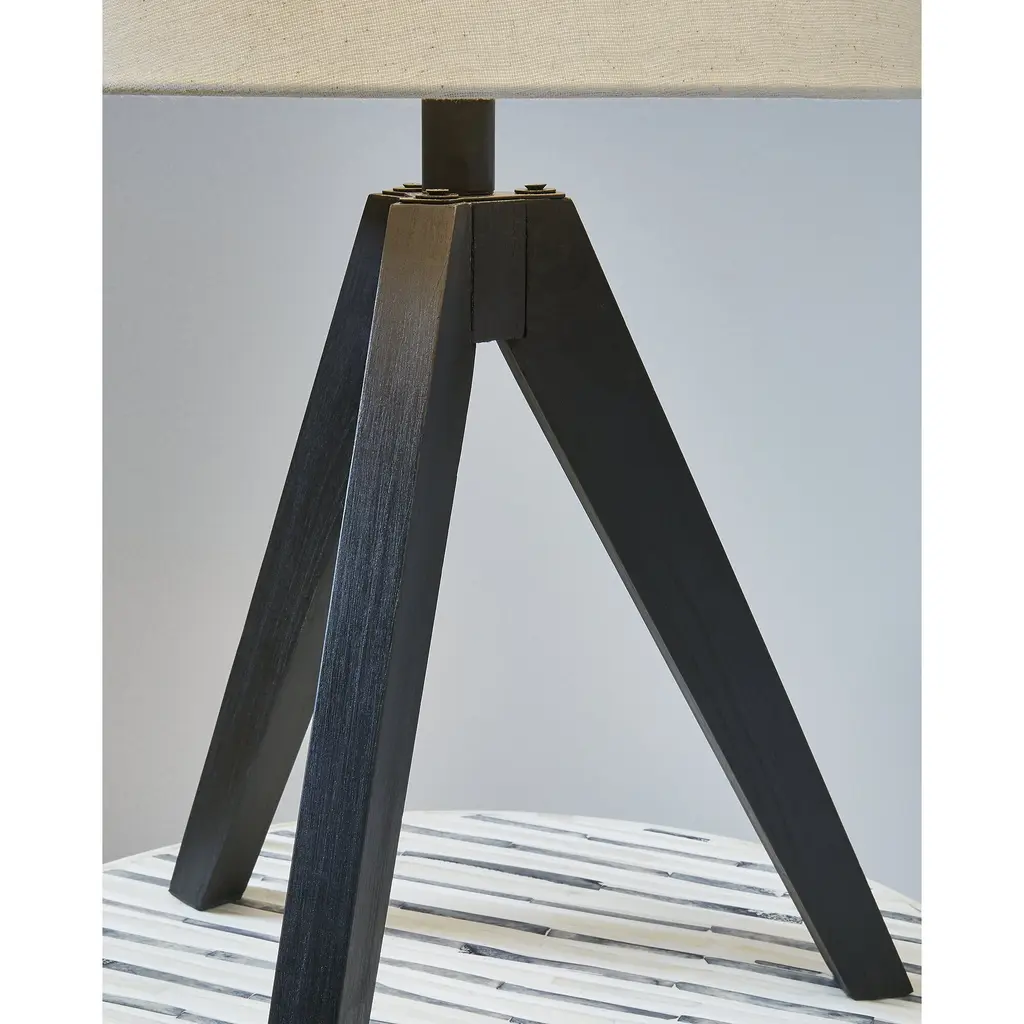 This table lamp's unique wooden tripod base is beautifully complemented by an empire hardback shade. The perfect touch for mid-century modern or upscale urban rooms, this piece is sure to add an artistic touch wherever it's displayed.